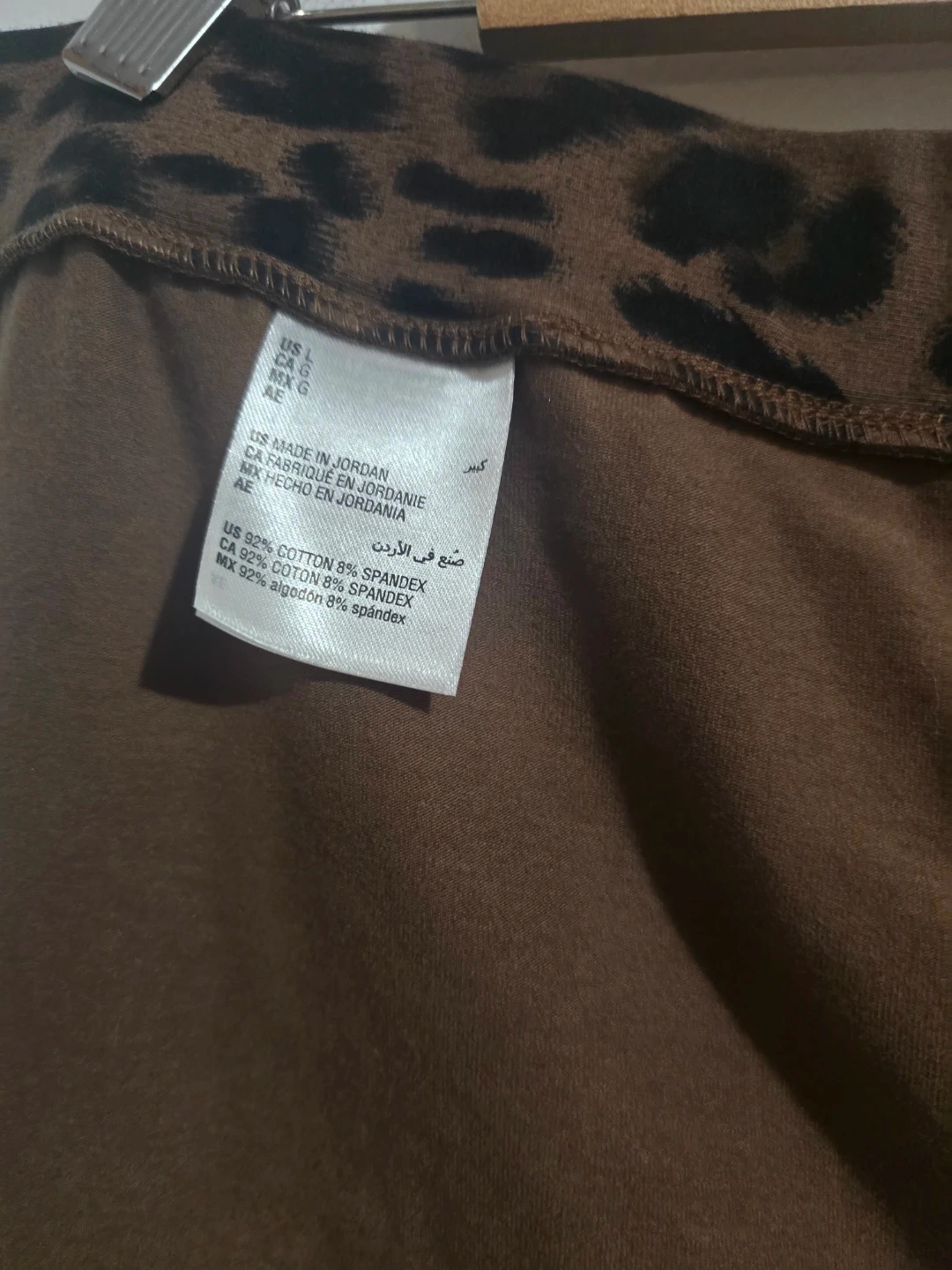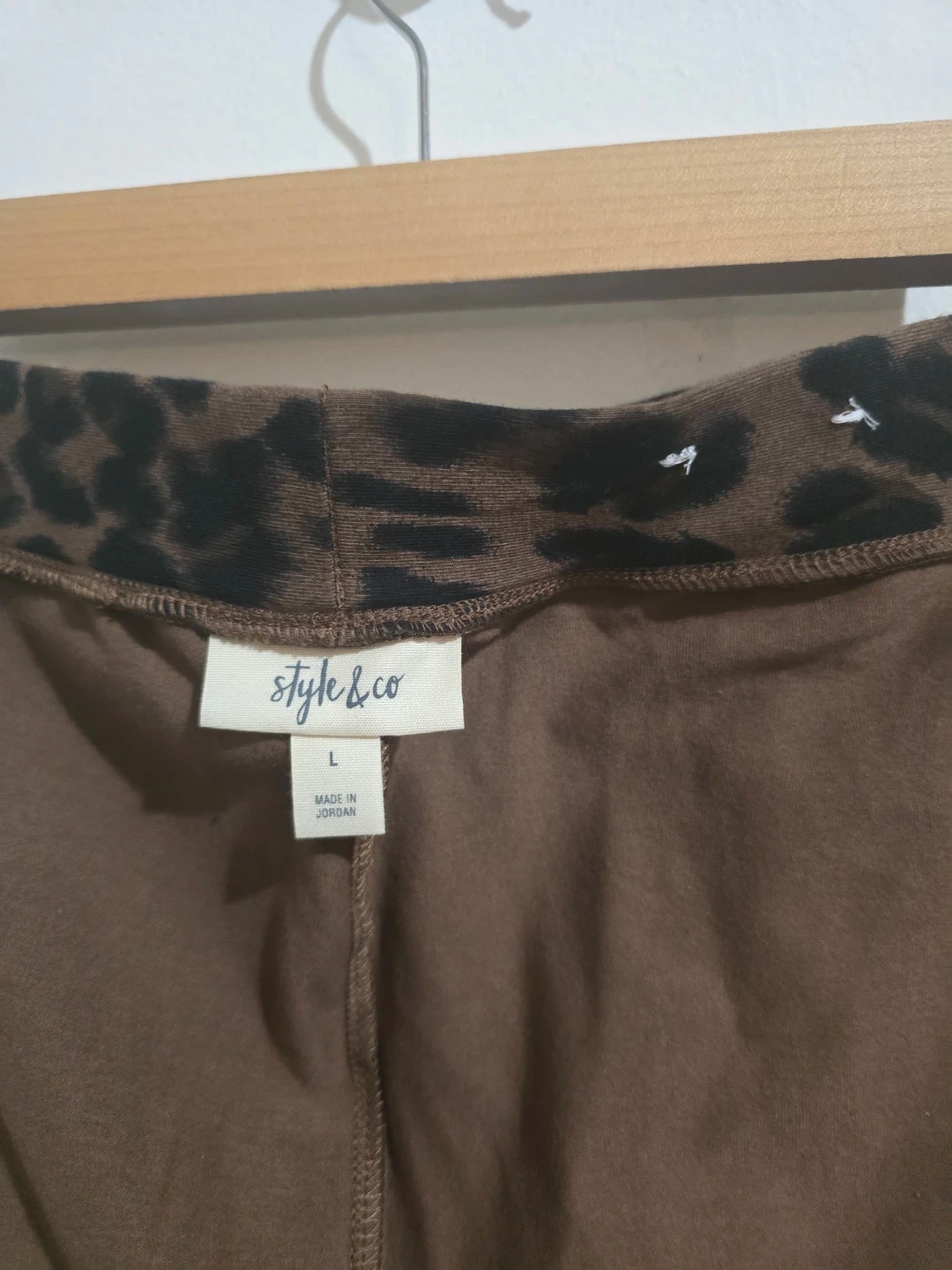Brown and black leopard print leggings from Style & Co. These leggings are a size L and made of 92% cotton and 8% spandex. Comfortable for everyday wear!