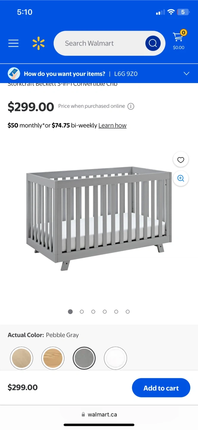 Storkcraft Beckett convertible crib in Pebble Gray. Converts from crib to toddler bed and daybed. Includes mattress support with adjustable positions. Solid wood construction.