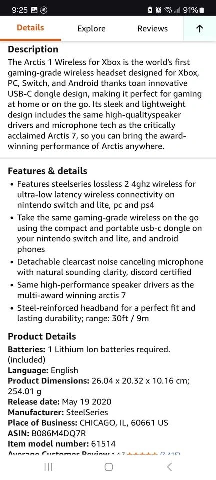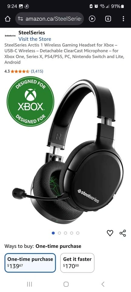 SteelSeries Arctis 1 Wireless Gaming Headset for Xbox – USB-C Wireless – Detachable ClearCast Microphone – for Xbox One, Series X, PS4/PS5, PC, Nintendo Switch and Lite, Android