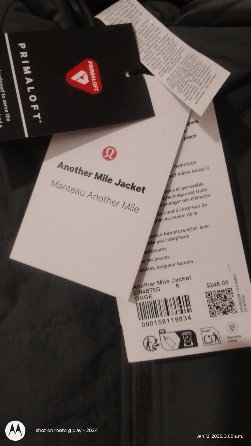 Selling a Lululemon Another Mile Jacket in size 6,8 and 10! It's in great condition and ready for those chilly days. This jacket features PrimaLoft insulation, perfect for keeping you warm and cozy. Originally priced at $248.00, it's a steal!๐