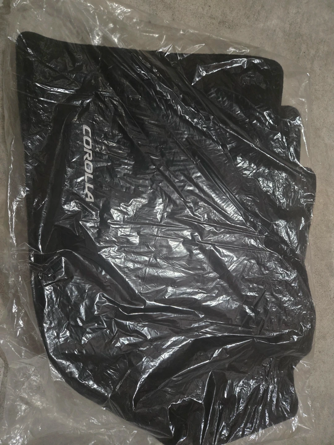 Set of all-weather floor mats designed for a Toyota Corolla. Black colour with the Corolla logo embossed. Protect your car's interior from dirt and spills!