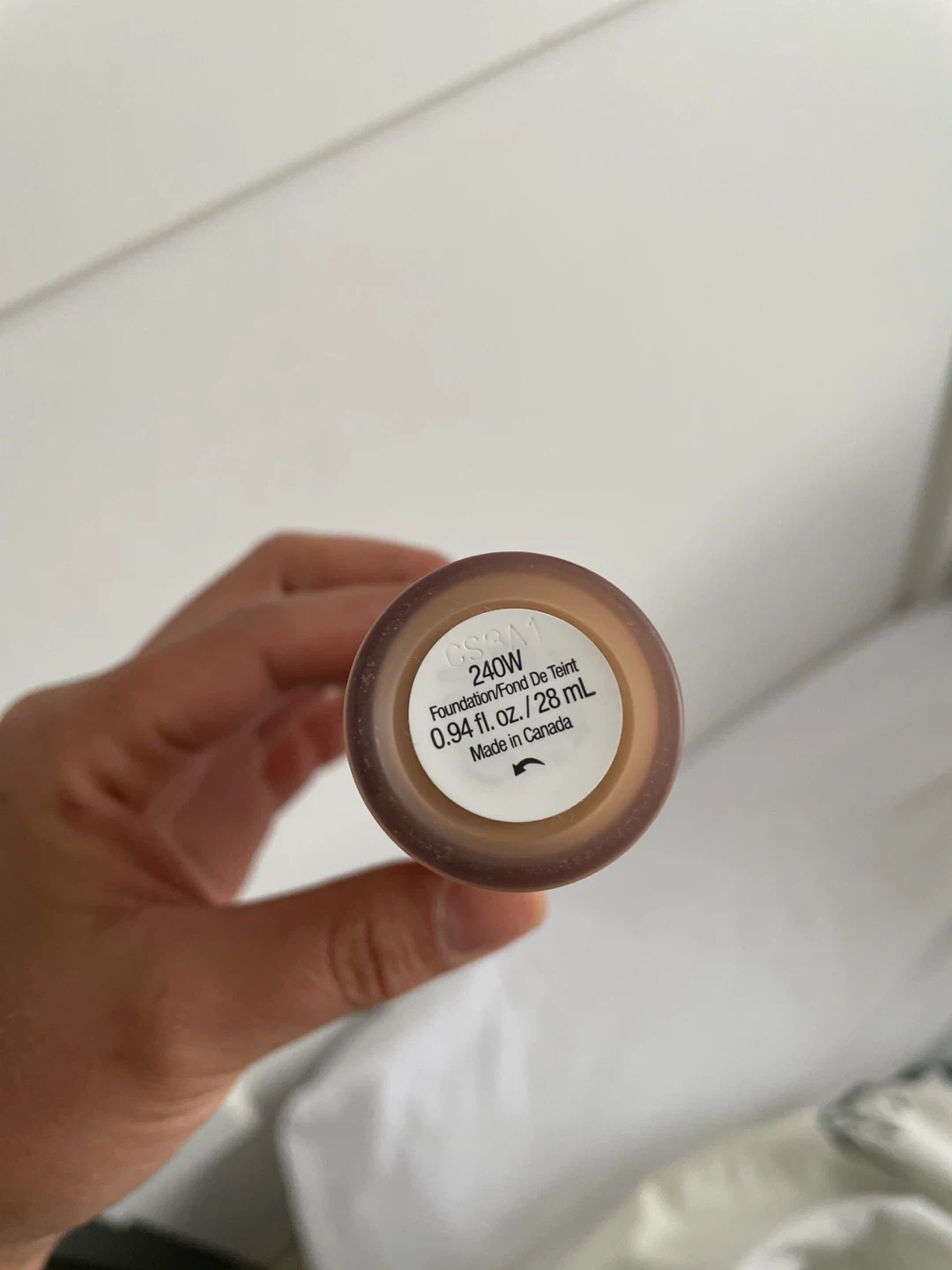 This is a bottle of Rare Beauty liquid foundation. It's shade 240W. Contains 0.94 fl. oz. / 28 ml.