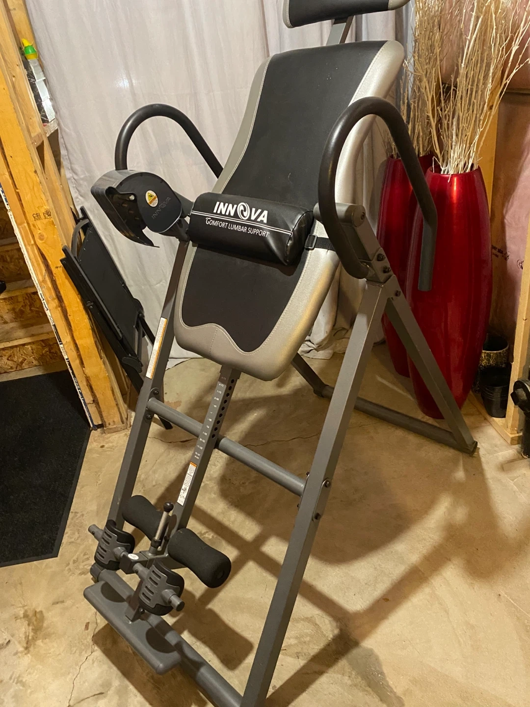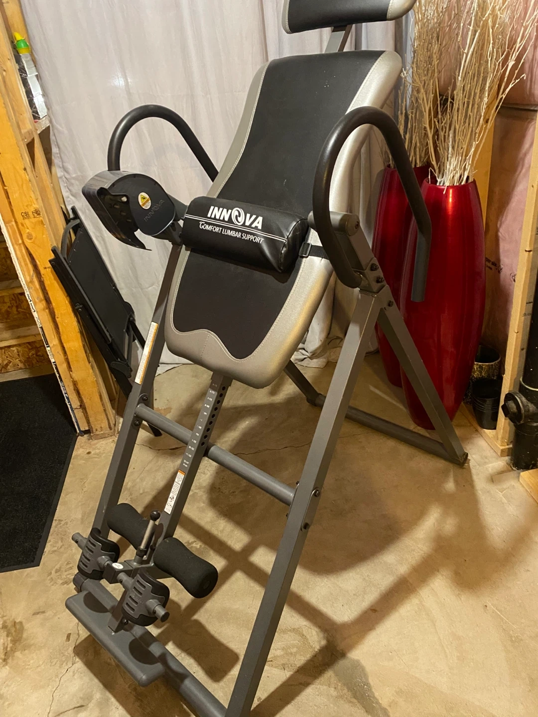 Selling an Innova inversion table with comfort lumbar support! It's in great shape and ready to help you relax and de-stress. Perfect for anyone looking to improve their posture or relieve back pain