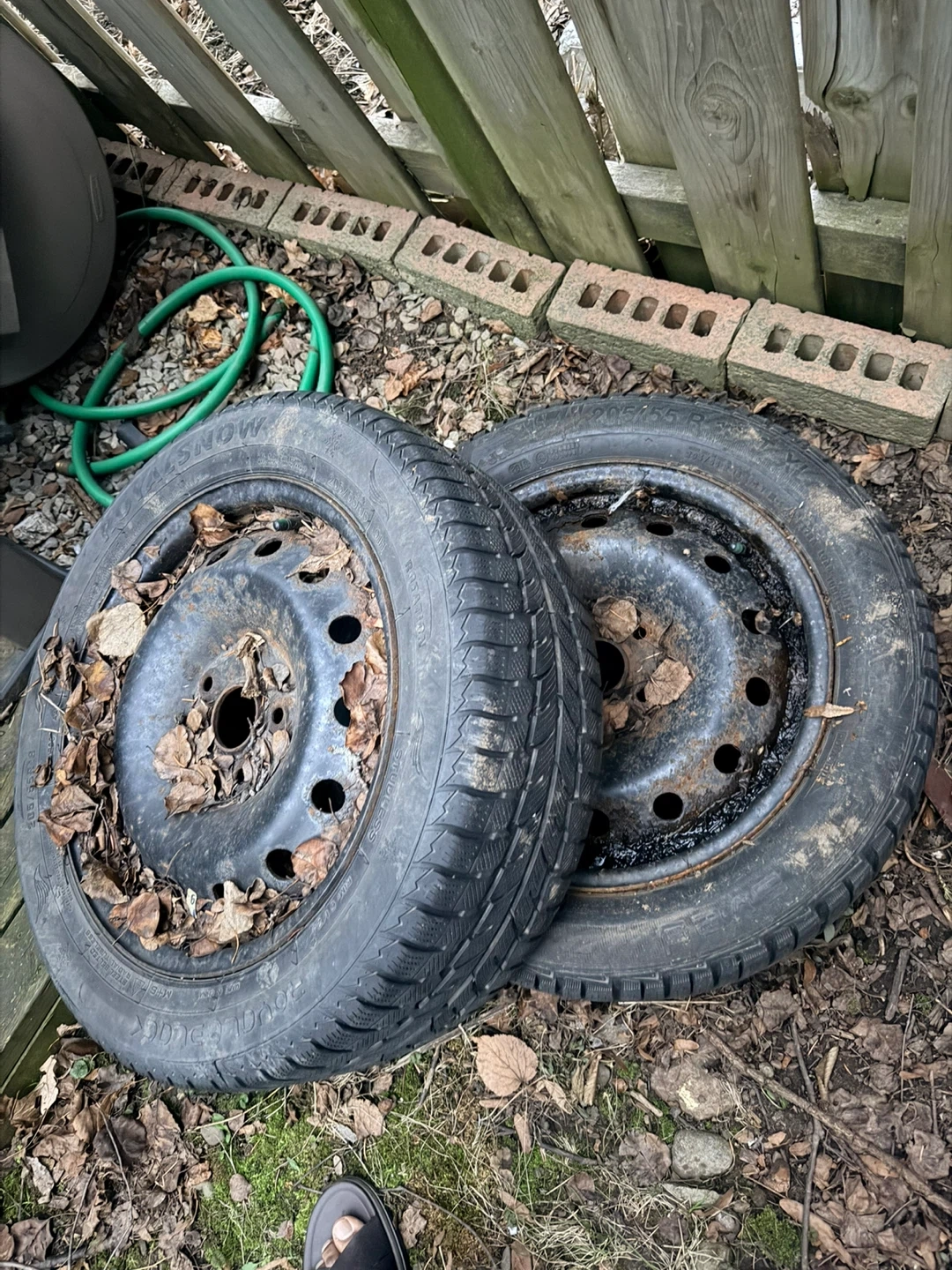 Selling a pair of snow tires on steel rims. They're in good condition, ready for the winter months. These would be great as a spare set for your vehicle.16 size.