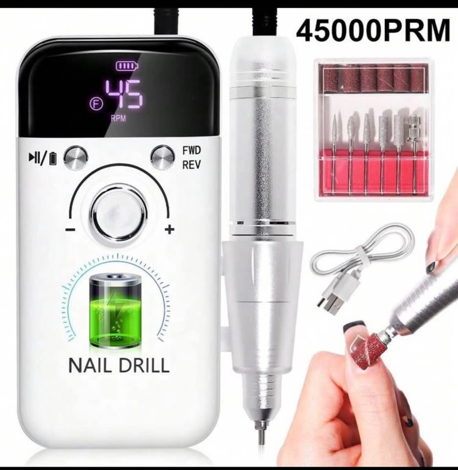 JMMO Professional 45000RPM Electric Nail Drill - Portable, Rechargeable With Low Noise For Manicure & Pedicure - USB Powered, Lithium Battery, Valentine's Day Gift