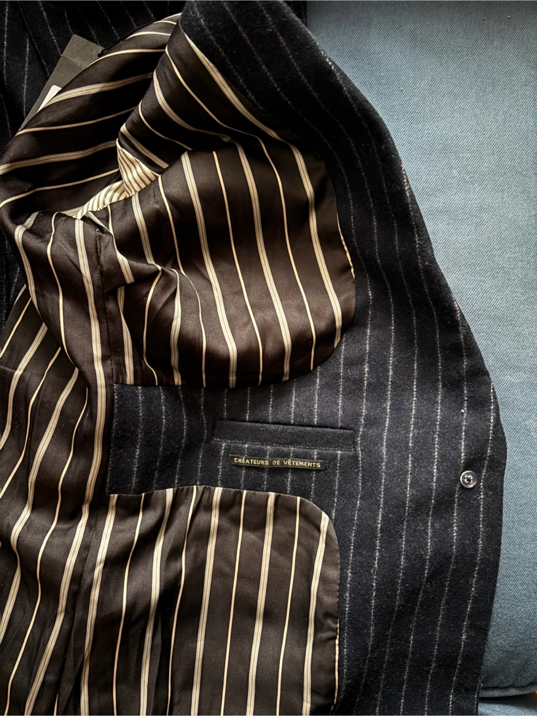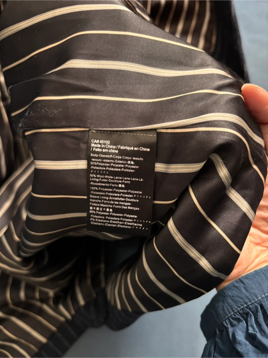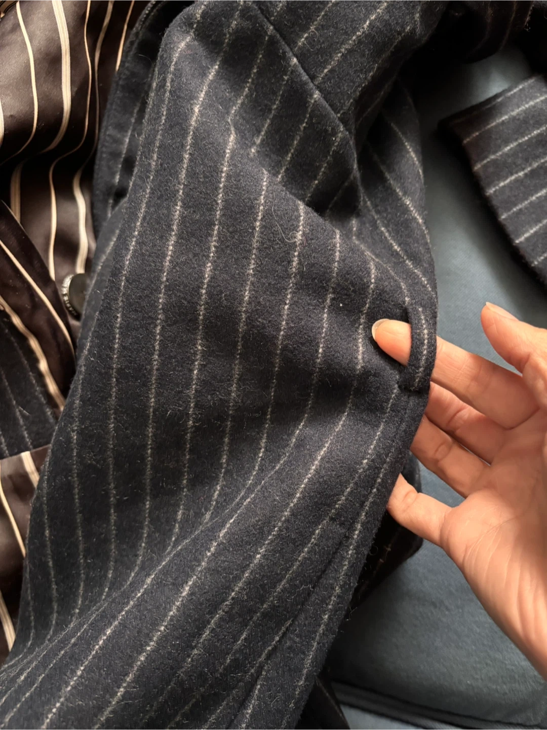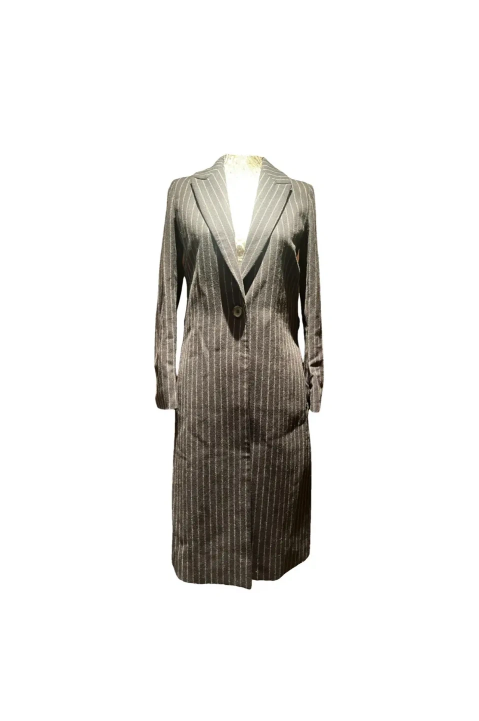 A stylish Maison Scotch wool blended long coat with a unique striped pattern. Very detailed.