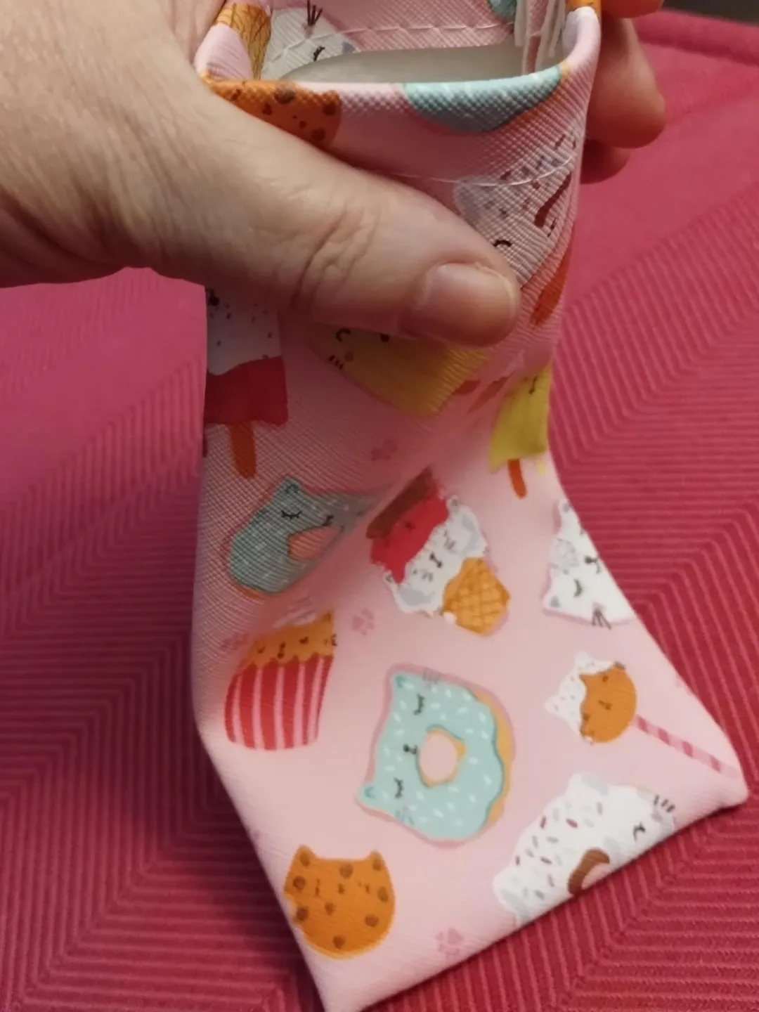 This cute card holder features a fun pink dessert print with cupcakes, donuts, cookies and ice cream! It's perfect for keeping your cards organized and adding a touch of sweetness to your everyday essentials