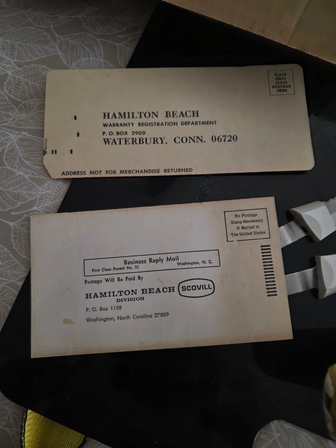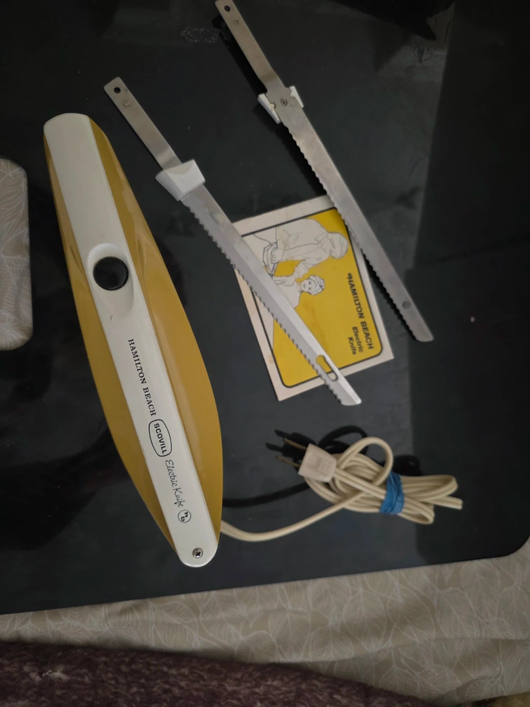 This item is a vintage Hamilton Beach (Scovill) electric carving knife set, likely from the 1960s or 1970s, which is considered a collectible appliance.