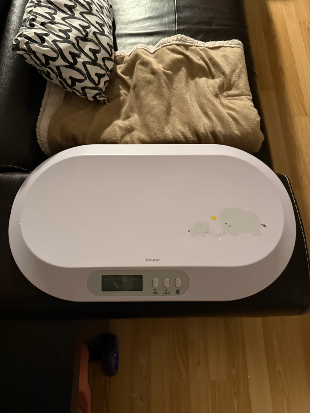 This is a Beurer baby scale with a digital display. It's white with a cute elephant design. Great for tracking your baby's growth!