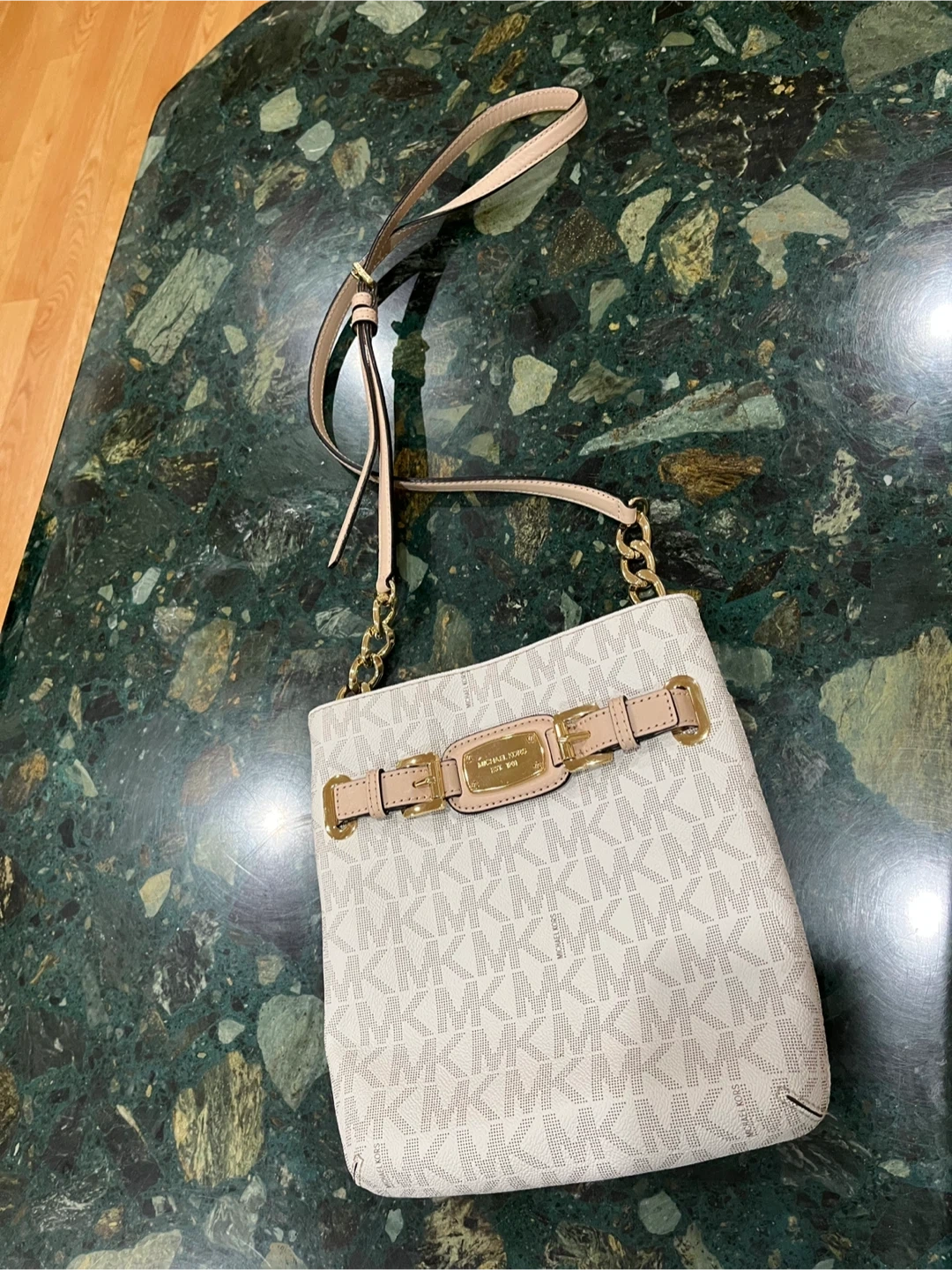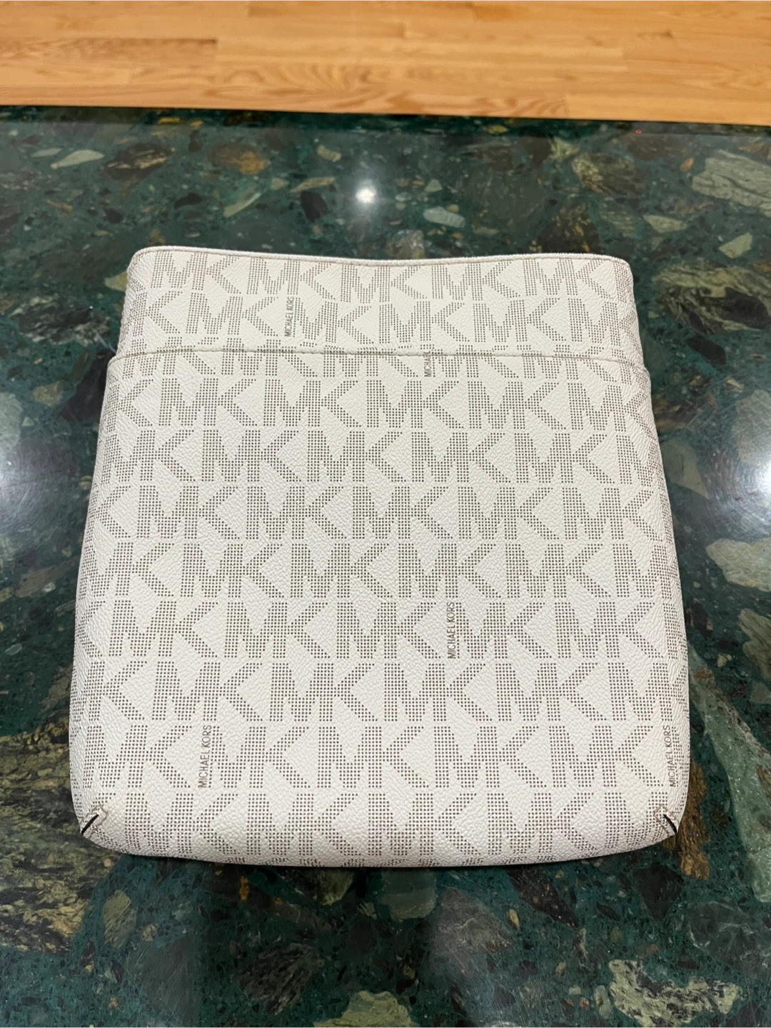 I'm selling a Michael Kors shoulder bag. It features the signature MK logo print all over. This stylish bag is perfect for everyday use!