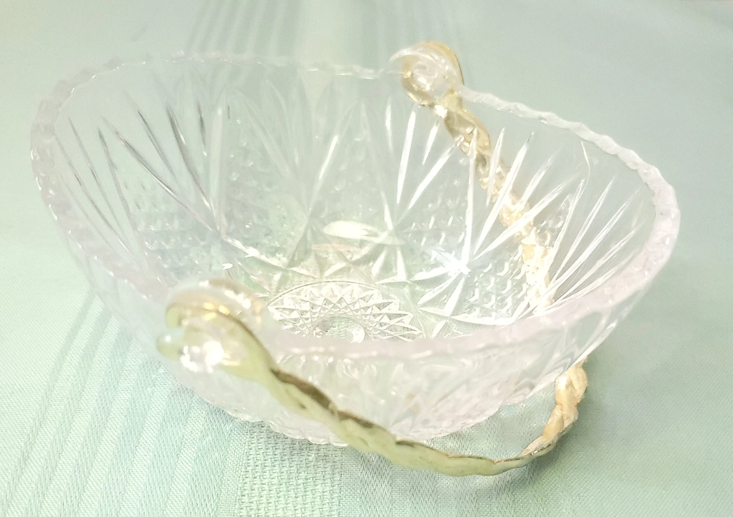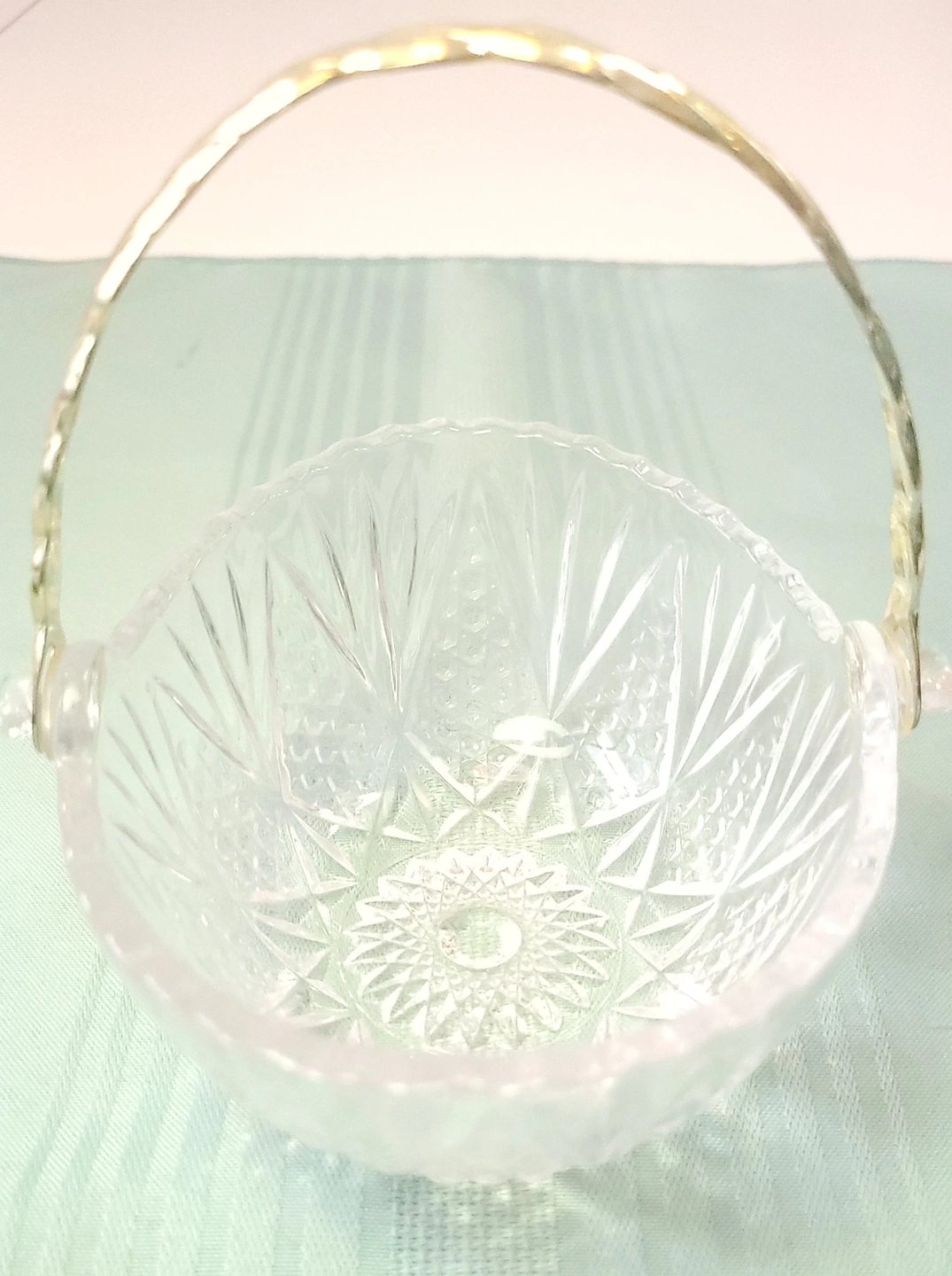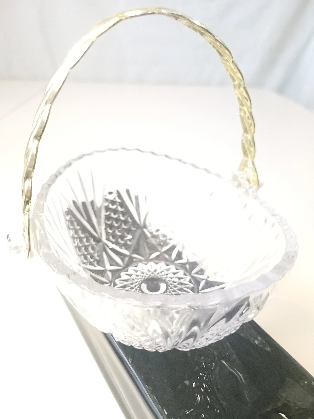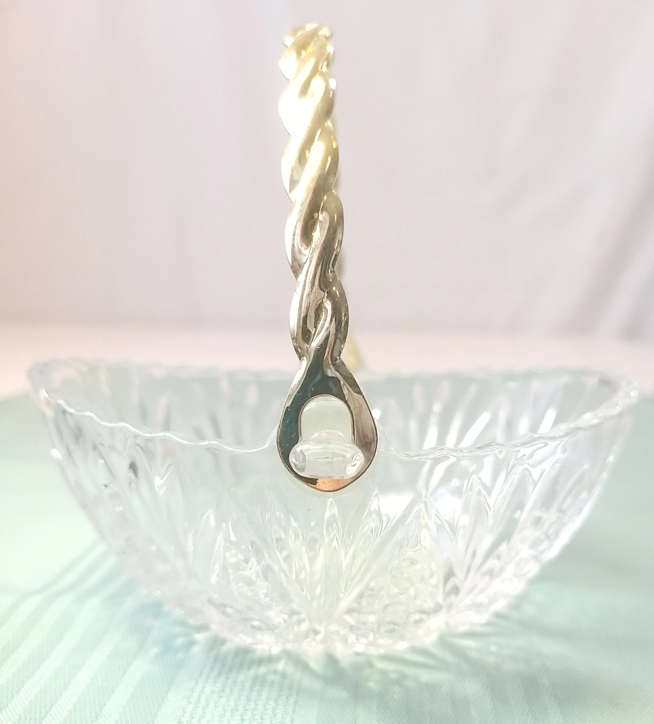 1982 West Germany 24% Lead Crystal Basket Gold Twisted Handle