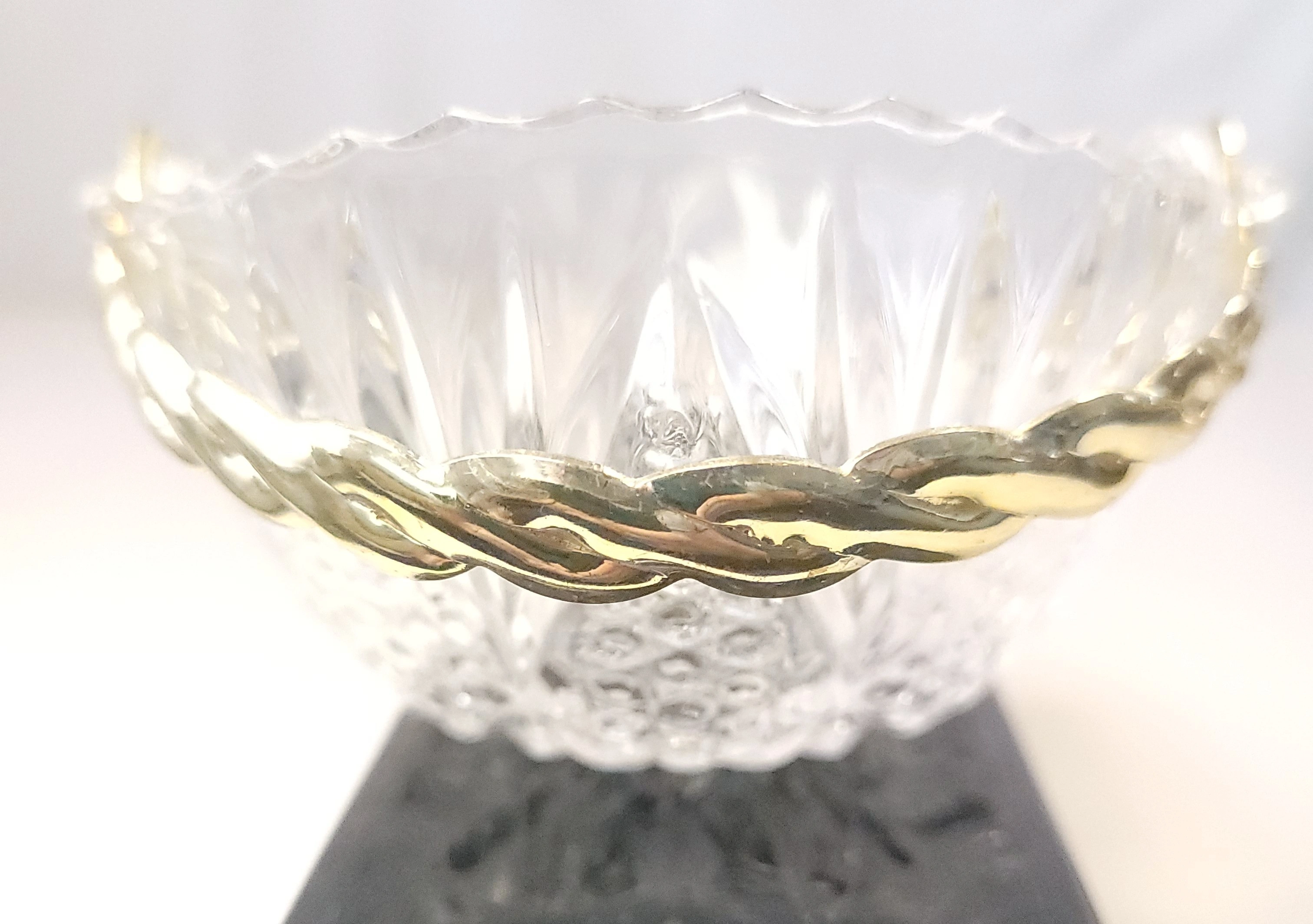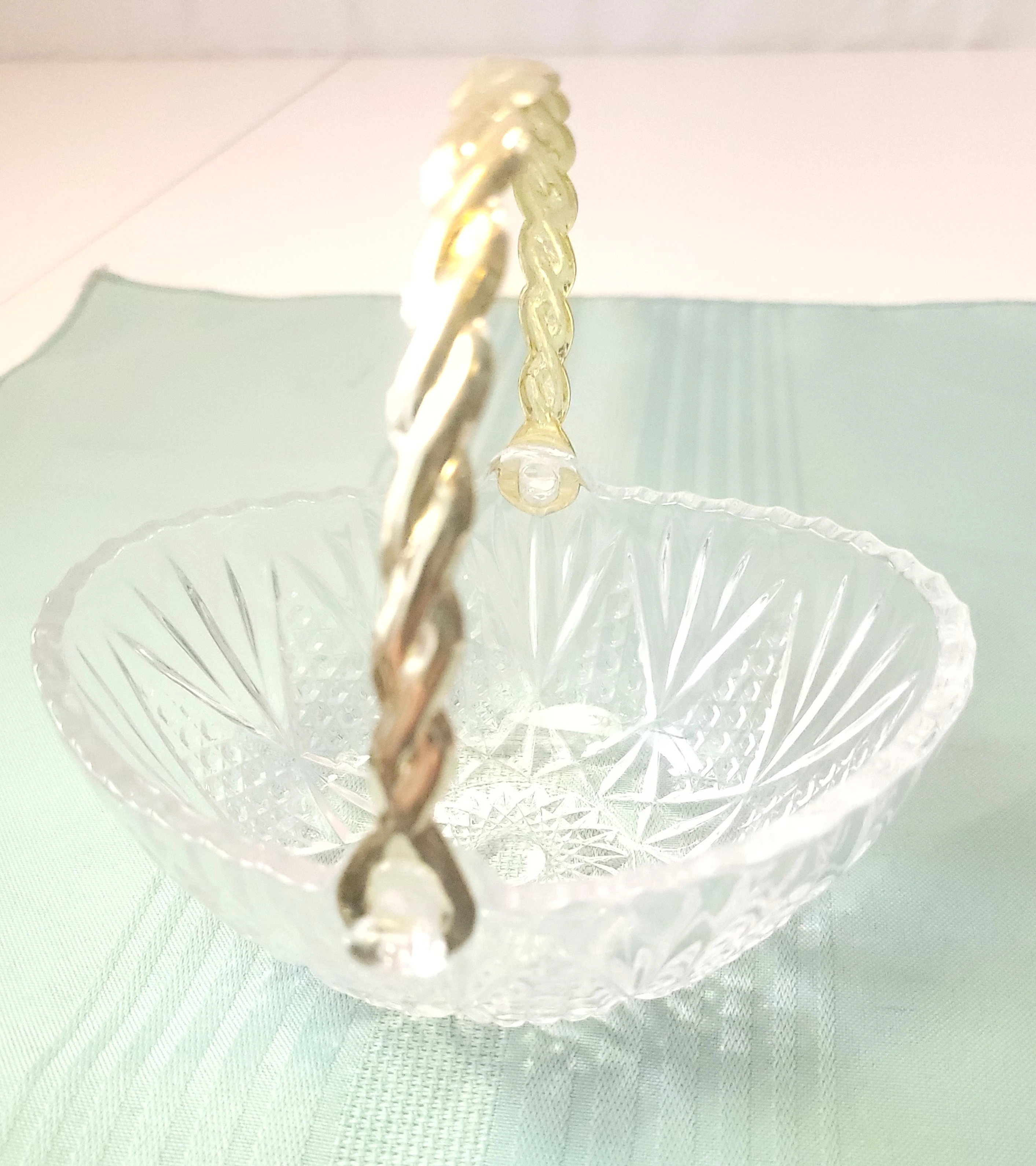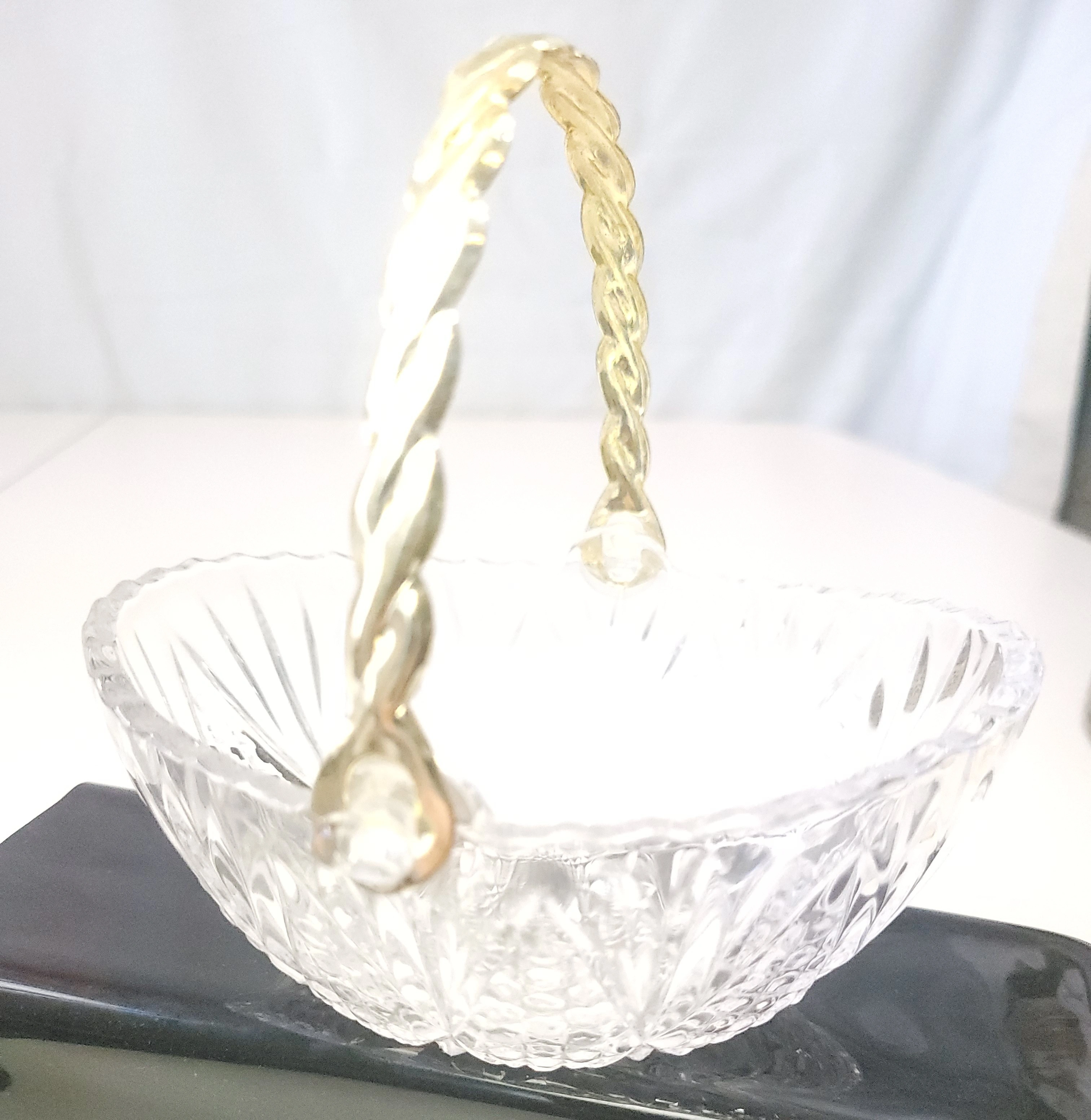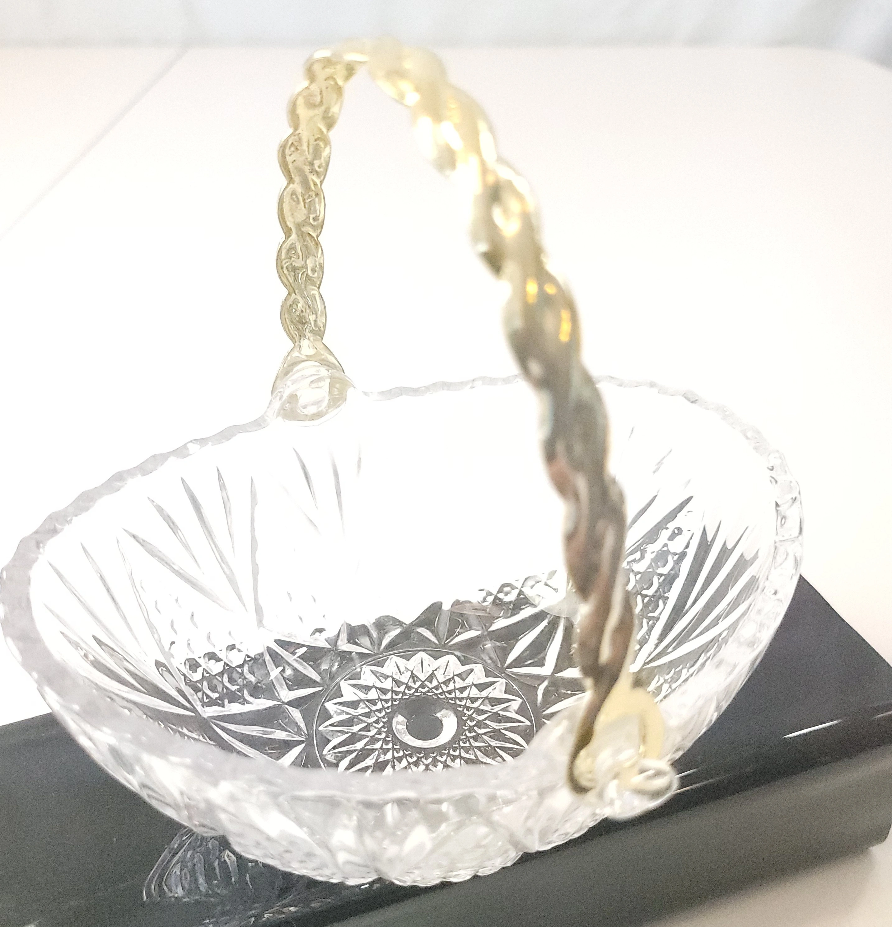 1982 West Germany 24% Lead Crystal Basket Gold Twisted Handle