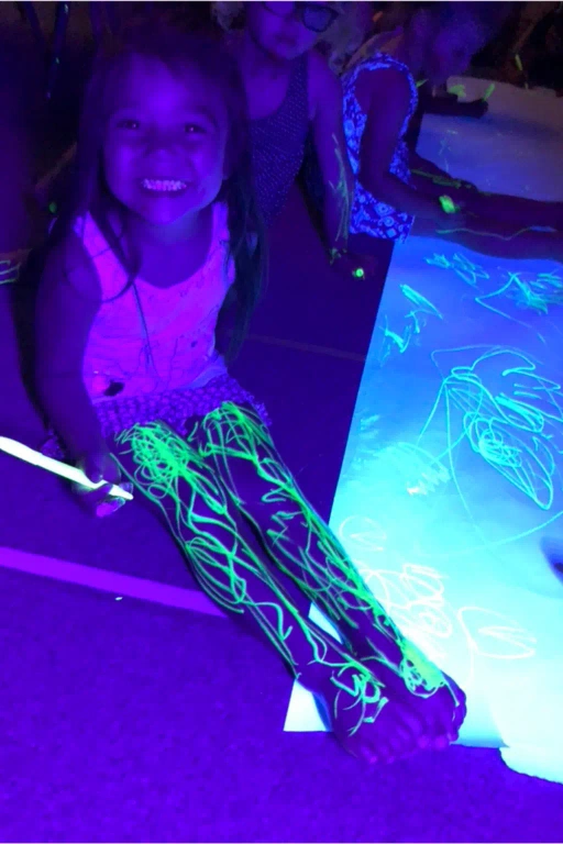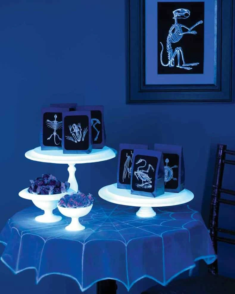 Use laundry detergent to paint/write on anything to make them glow. Highliters also work and many more.