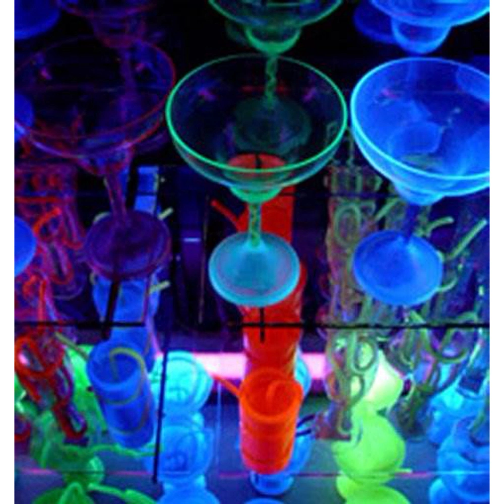 - Tonic water, club soda, 7up, Mountain Dew etc glow blue/white