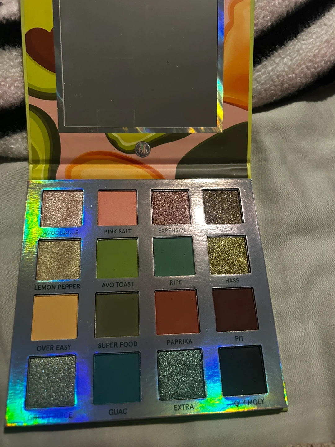 This is the BH Cosmetics Avocado Toast 16 Color Shadow Palette. It has a mix of mattes and shimmers in warm and earthy tones. It's great for creating a variety of eyeshadow looks!