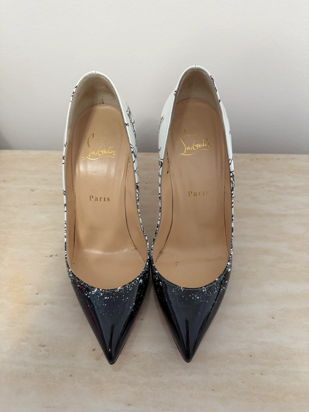 Christian Louboutin White Black Map Print Heels
