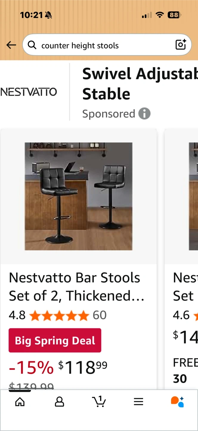 Set of 2 adjustable bar stools.
