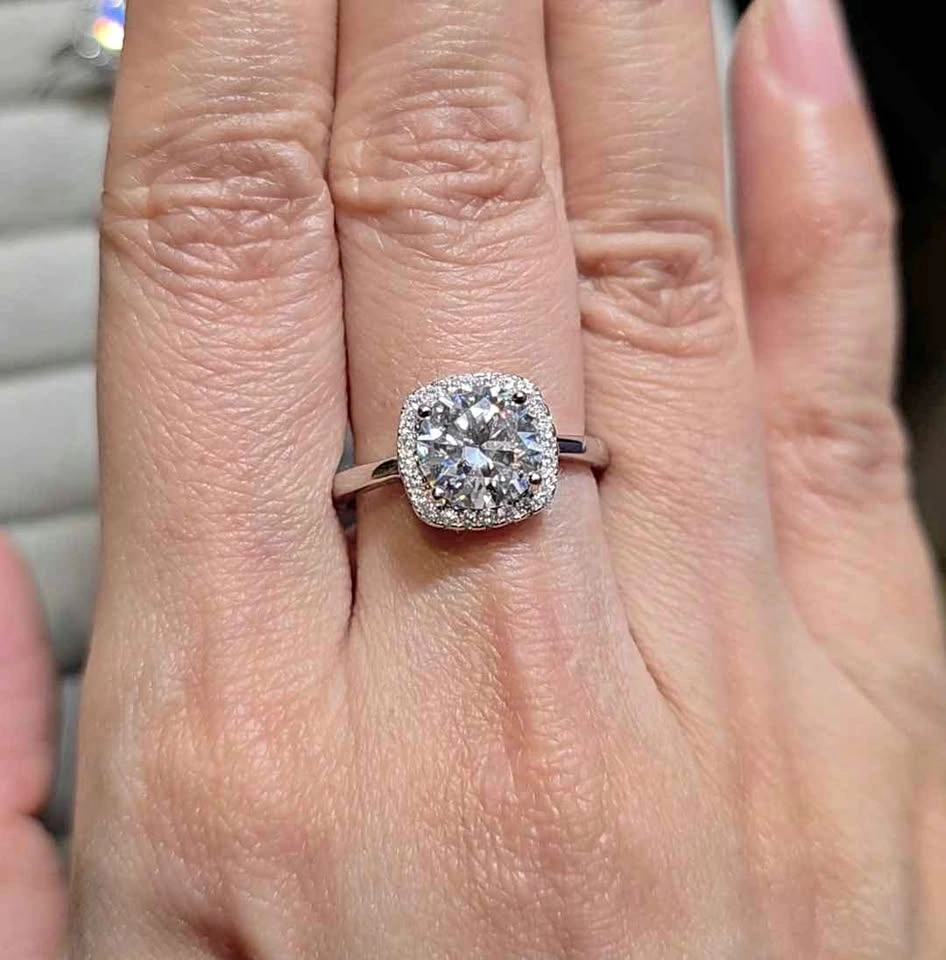 Brand New 2 carat Moissanite Ring (Square halo). D Color | VVS Clarity | Sterling Silver | Hypoallergenic | Adjustable Band | Diamond Tester passed. Sparkles like a diamond — perfect for everyday luxury, bridal gifts, or timeless elegance. Pickup in East Vancouver.