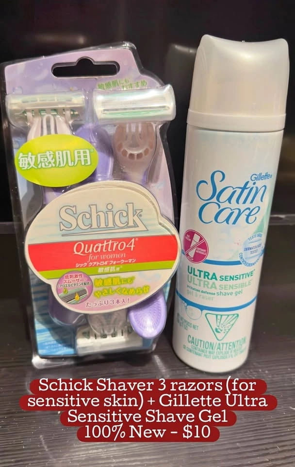 Schick Shaver 3 razors (for sensitive skin) + Gillette Ultra Sensitive Shave Gel - 100% New - $10