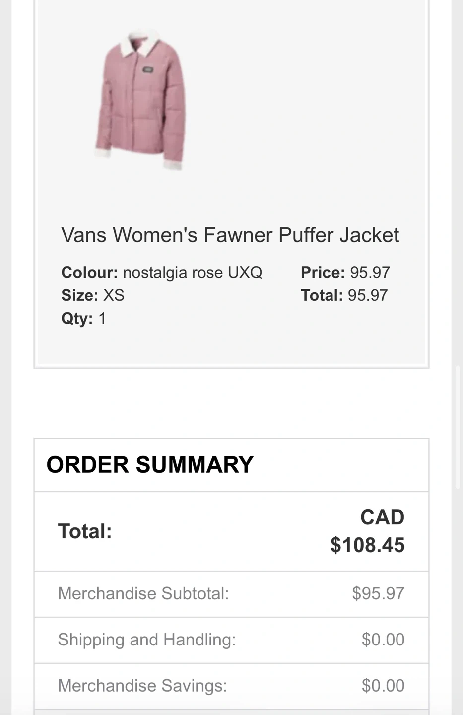 Selling Vans Fawner Puffer Jacket/Sherpa Collar