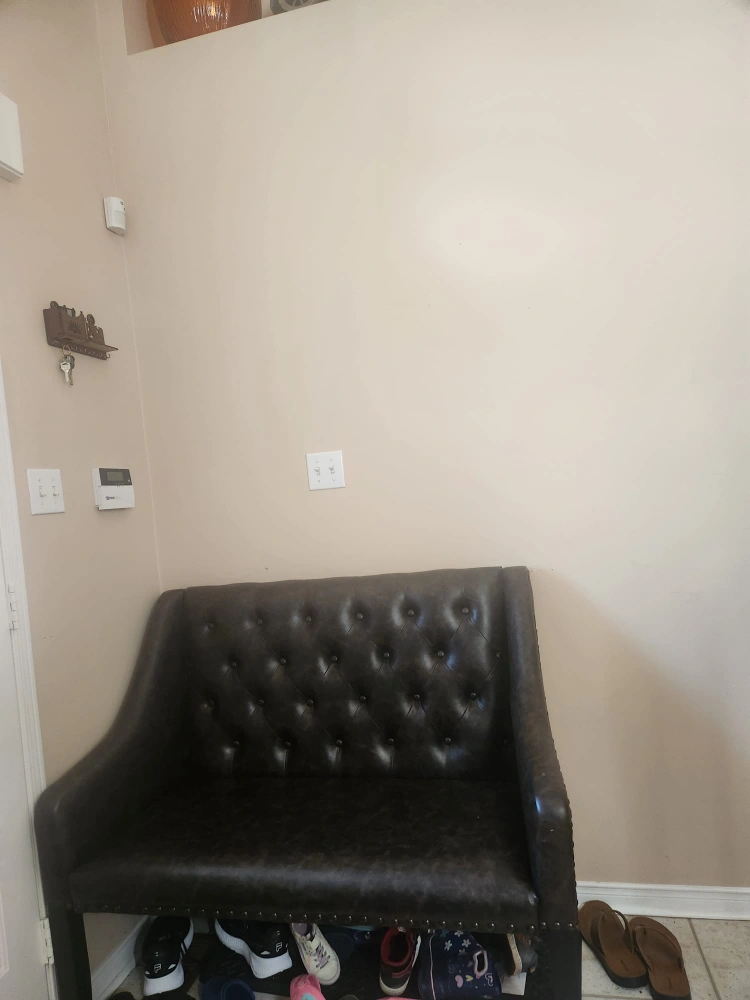Dark brown tufted entryway bench in good condition. Great for adding a touch of elegance to your entryway or hallway! The bench features a tufted design and a convenient storage space underneath for shoes or other items.