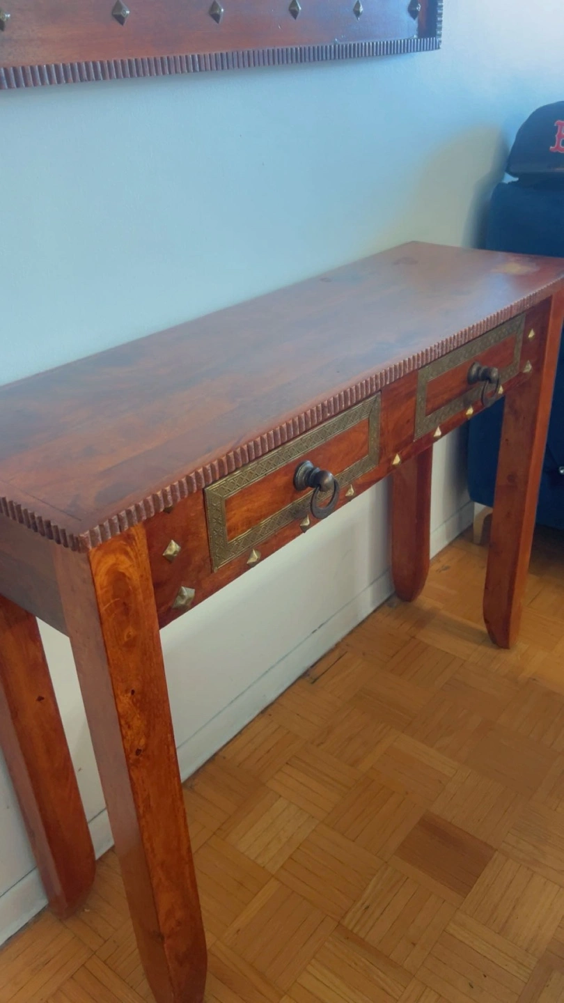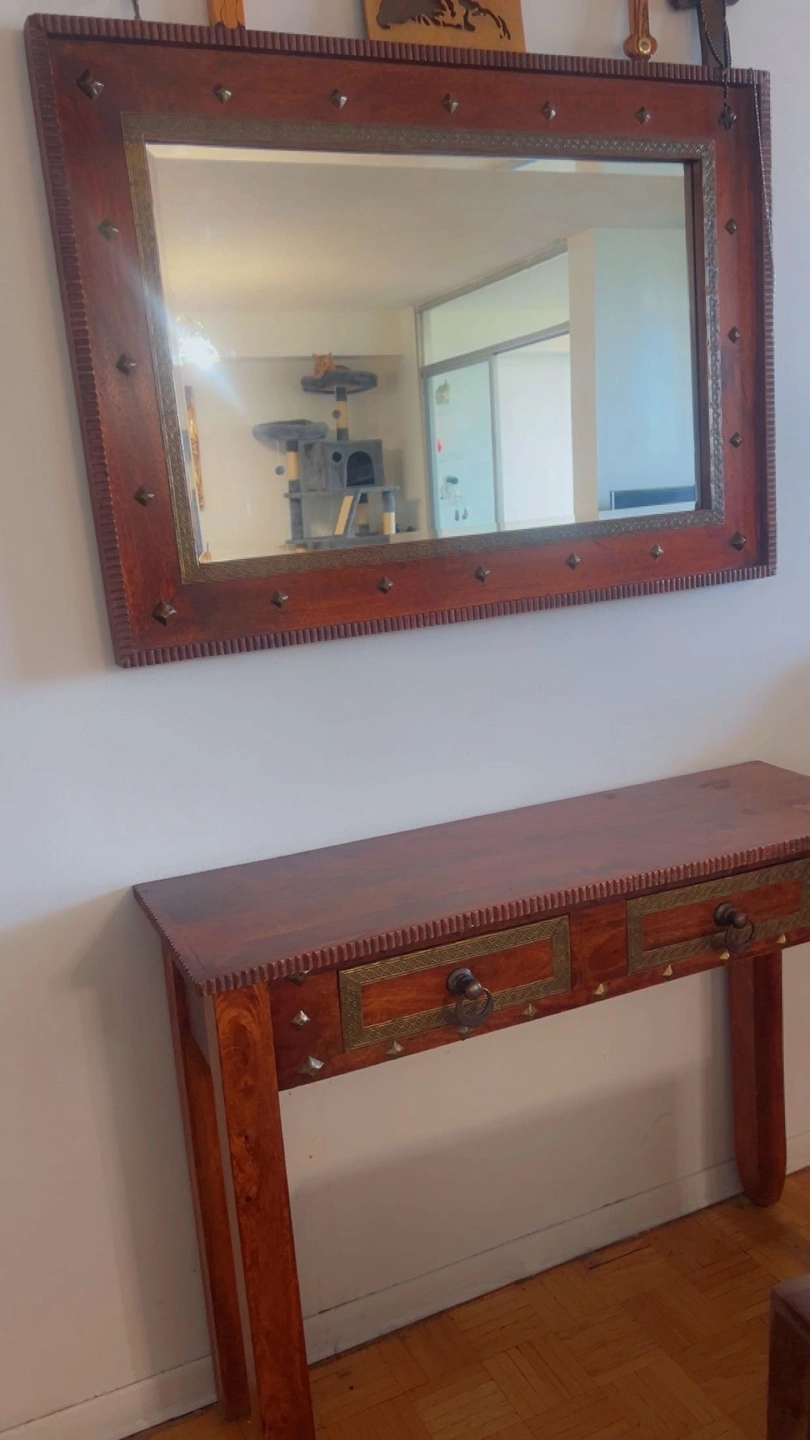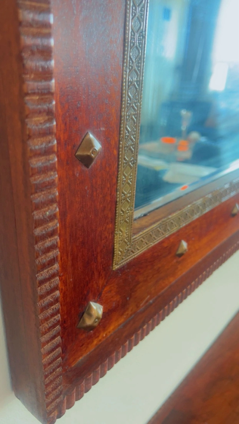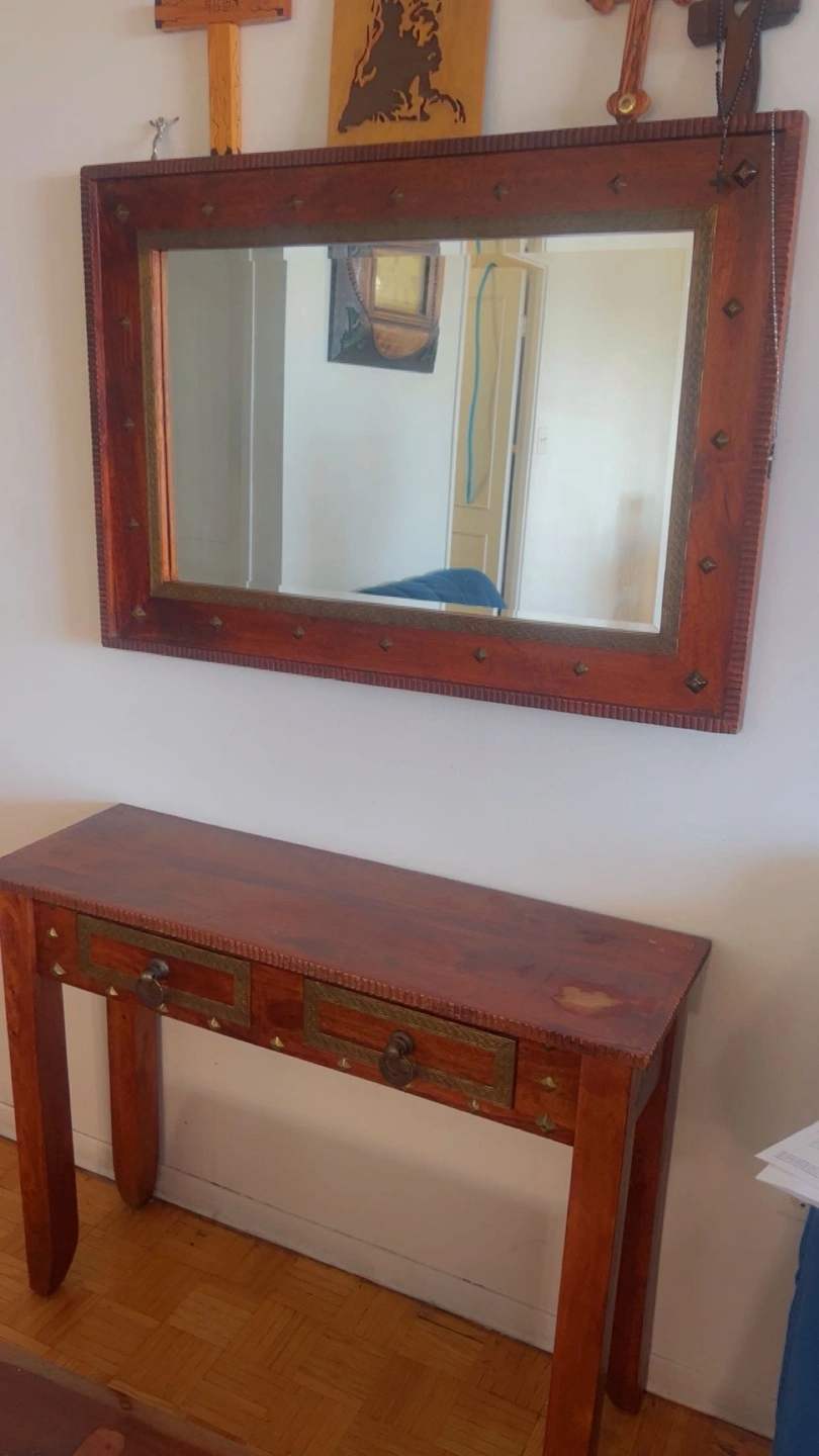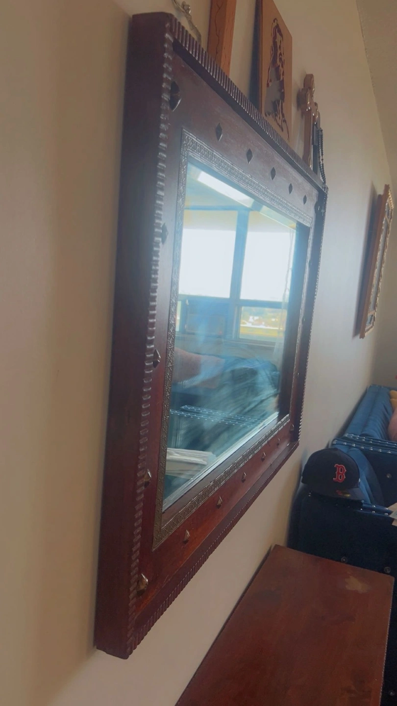 Selling a lovely wooden framed mirror. It has a unique design with decorative accents. Perfect for adding a touch of character to any room! It’s hand made very beautiful