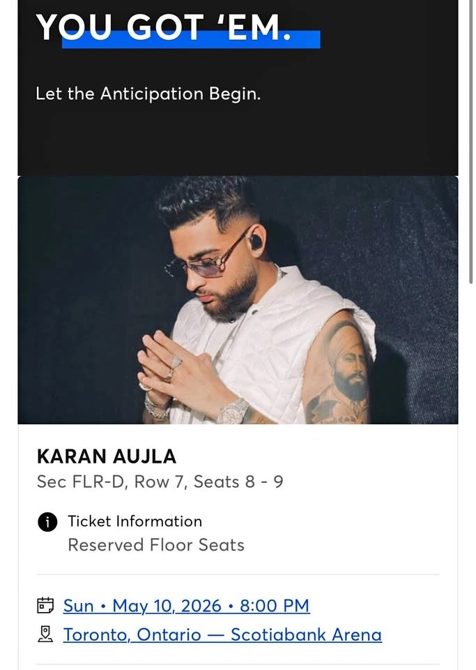 Buy & SellKaran Aujla May 10 Toronto Floor Ticket Sec DKaran Aujla May 10 Toronto Floor Ticket Sec D$350Let me know if you're interested!WHERE TO MEET27 Lyndbrook CrescentView MapSELLERAnmolValley Creek200 reviews0 chats·0 favorites·16 viewsSEND CHAT TO SELLERHi Anmol! I’m interested in your listing.Hi Anmol! I’m interested in your listing.Get the Karrot app to chatSign In to chat