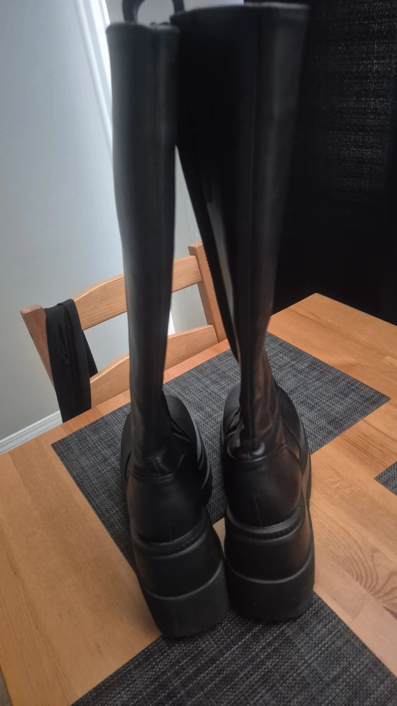 Demonia Women's Shaker-100 Wedge Platform Knee High Boots