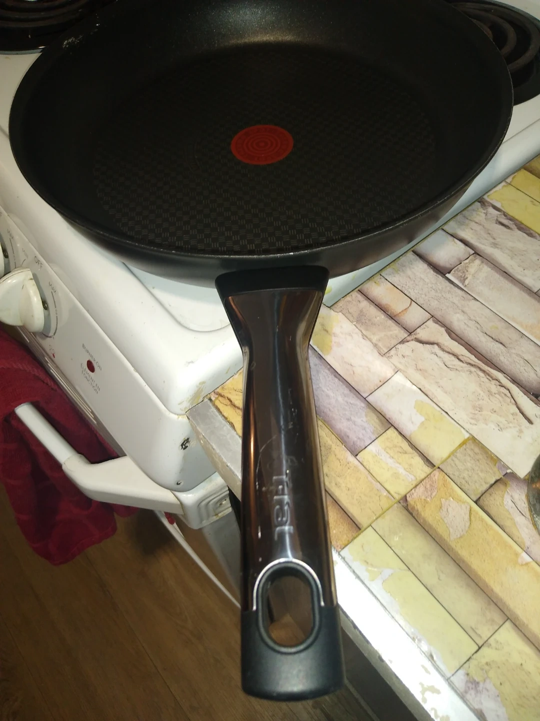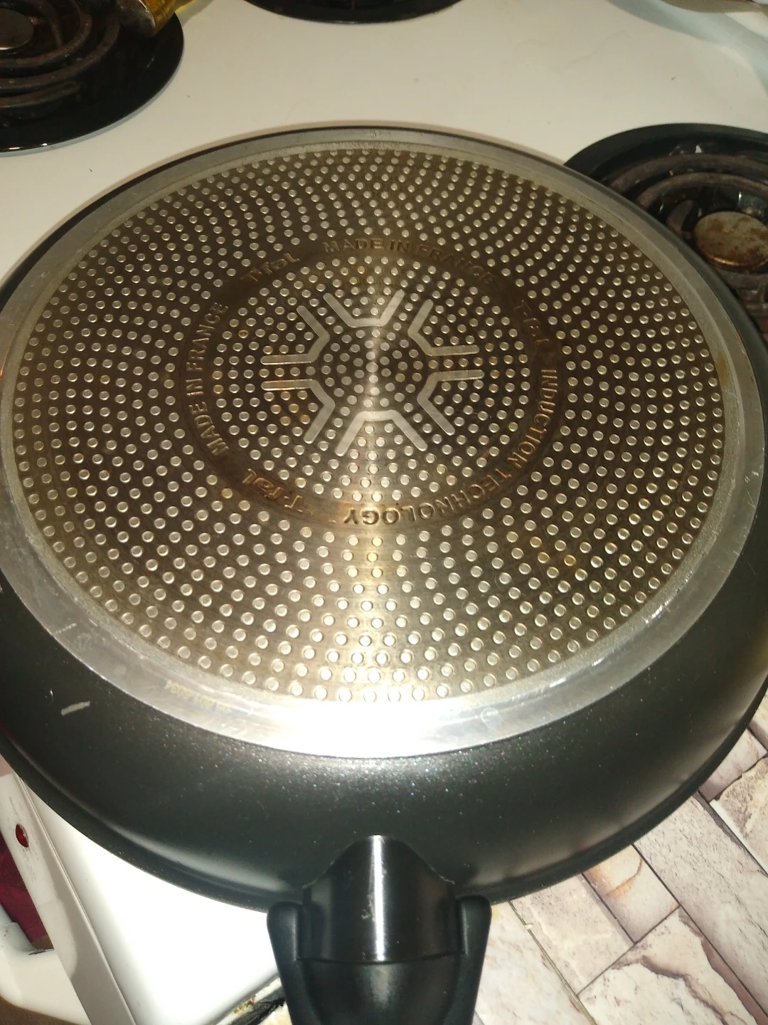 This is an extra large and deep lagostino pan it is made in made in France and T-Fal. It is in perfect condition not a scratch or scrape or anything wrong with it just like new. It is great for cooking a meal and clean up is easy