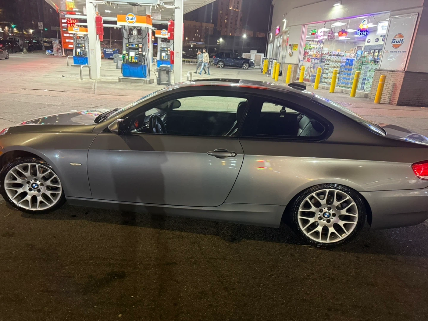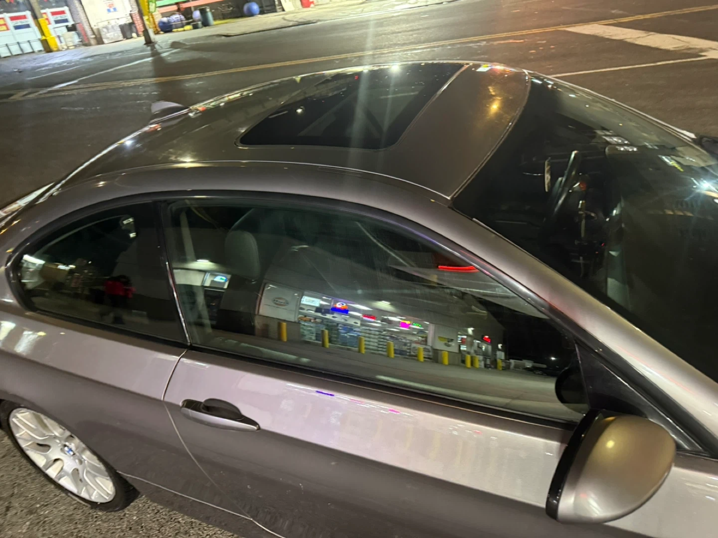 Silver BMW 3 Series coupe with a sunroof. It's a stylish two-door vehicle. Interior looks clean and well-maintained. Features alloy wheels and a sleek design.