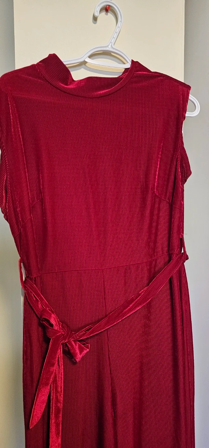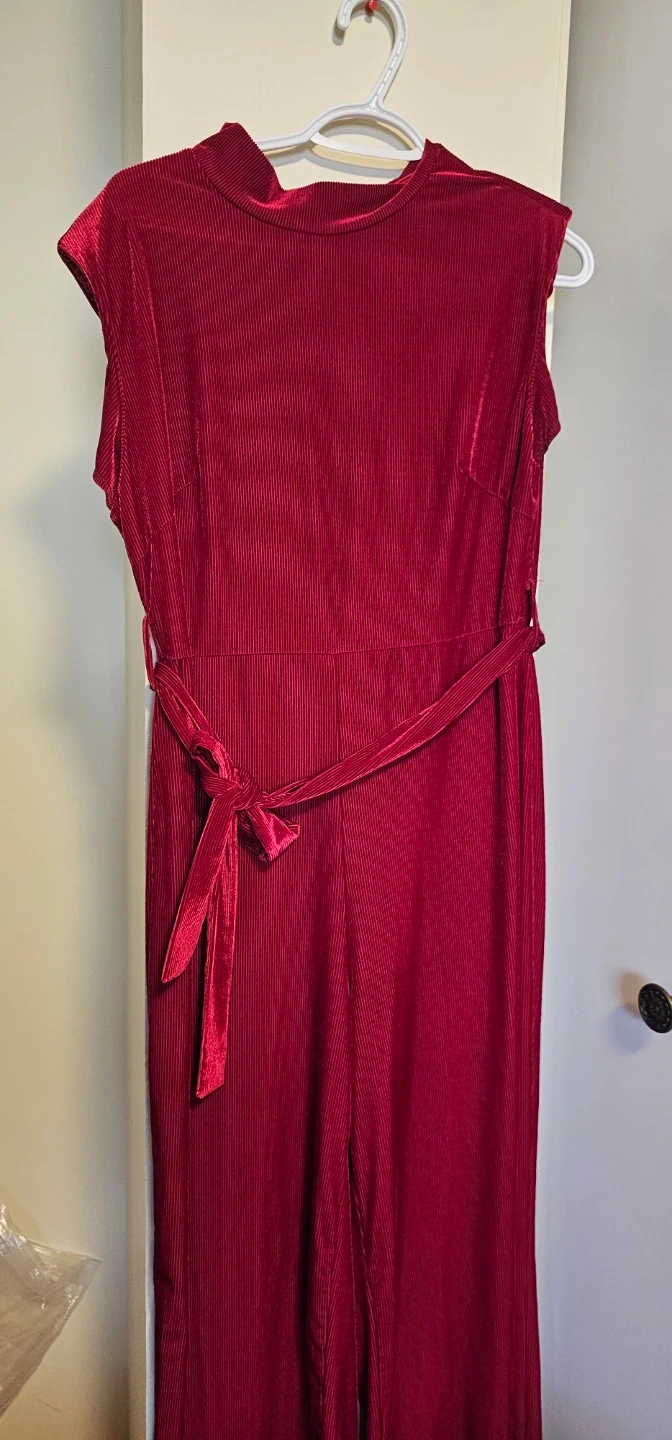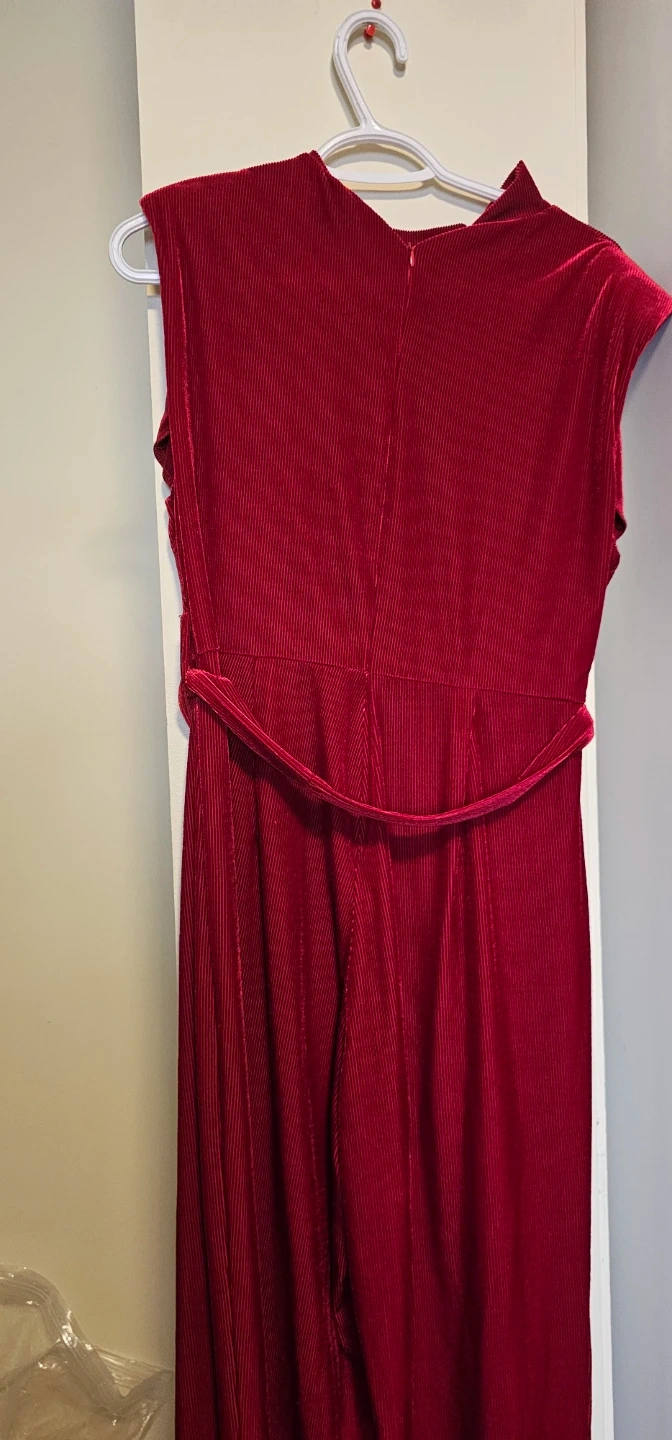 Red Ribbed Velvet Jumpsuit with Belt