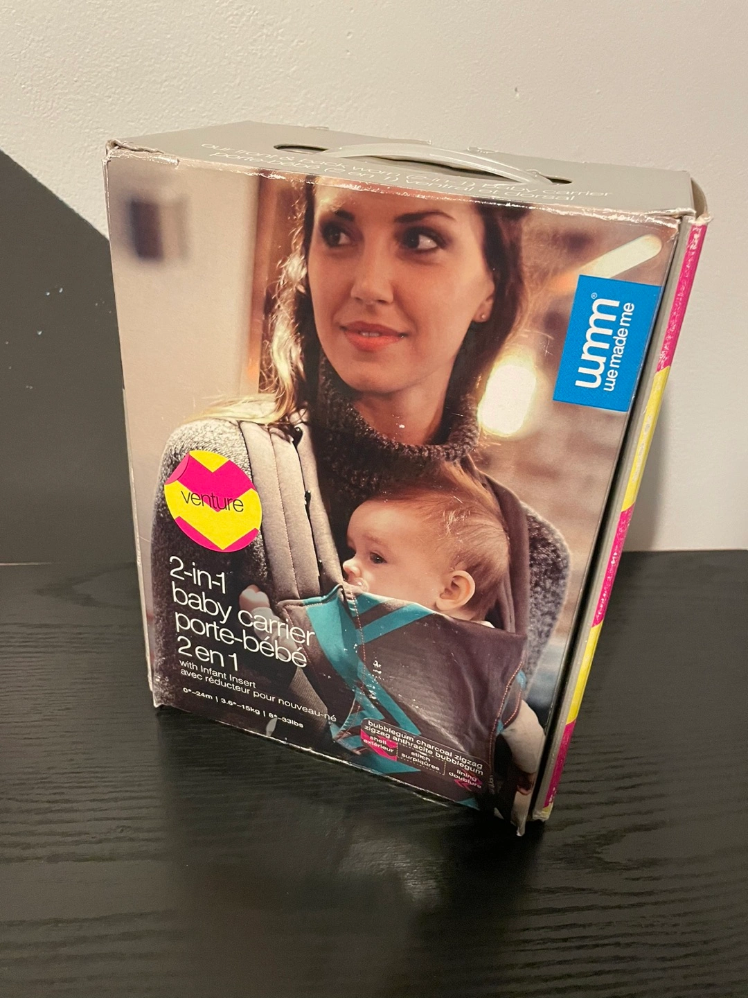 Diono We Made Me Venture, 2-in-1 Front and Back Worn Baby Carrier, from 3.6-15.9 kg, Bubblegum Charcoal Zigzag retails for over $75