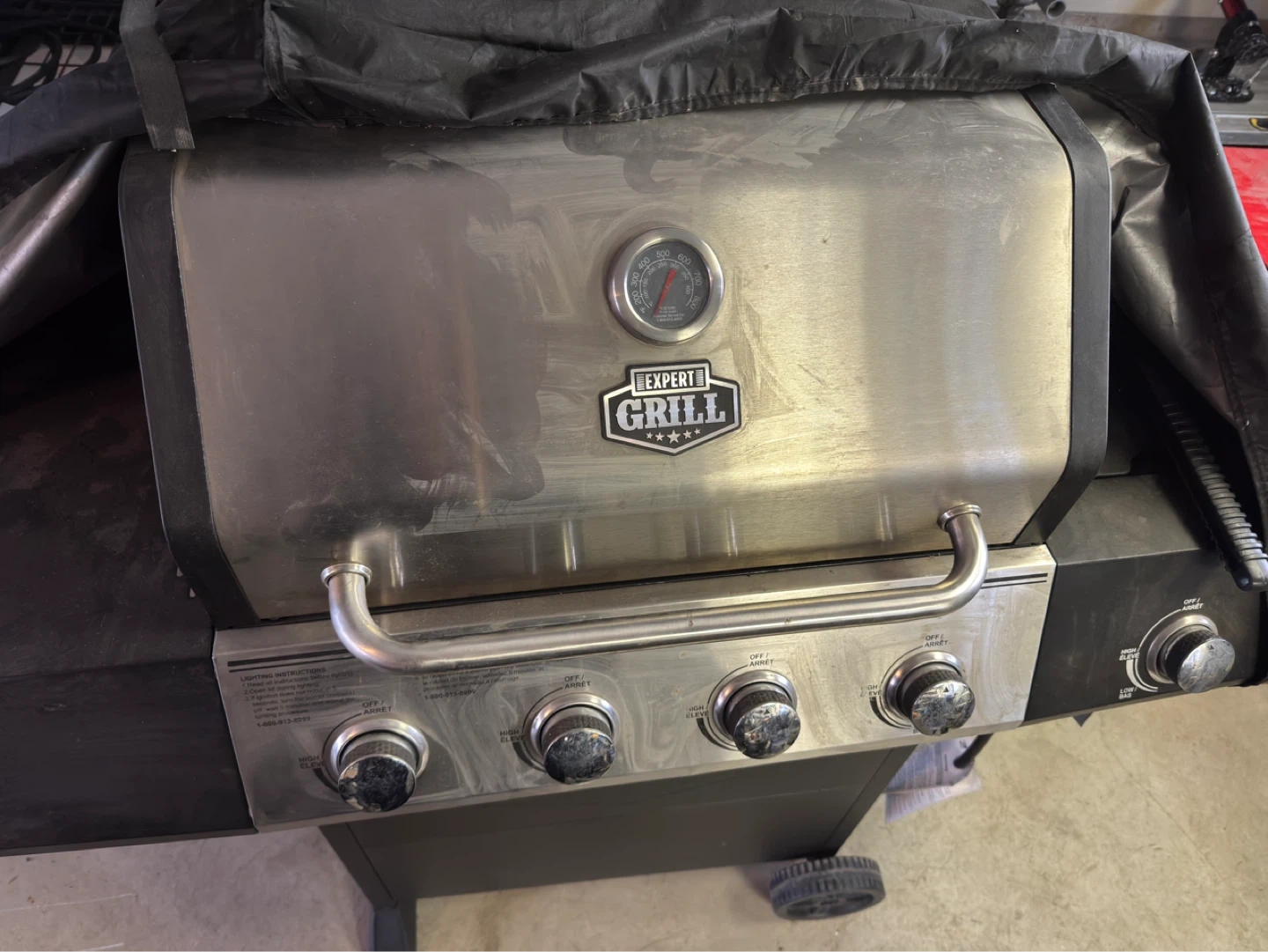 This Expert Grill propane gas grill has four main burners and a convenient side burner. Its stainless steel construction offers durability. It's great for outdoor cooking and gatherings!
