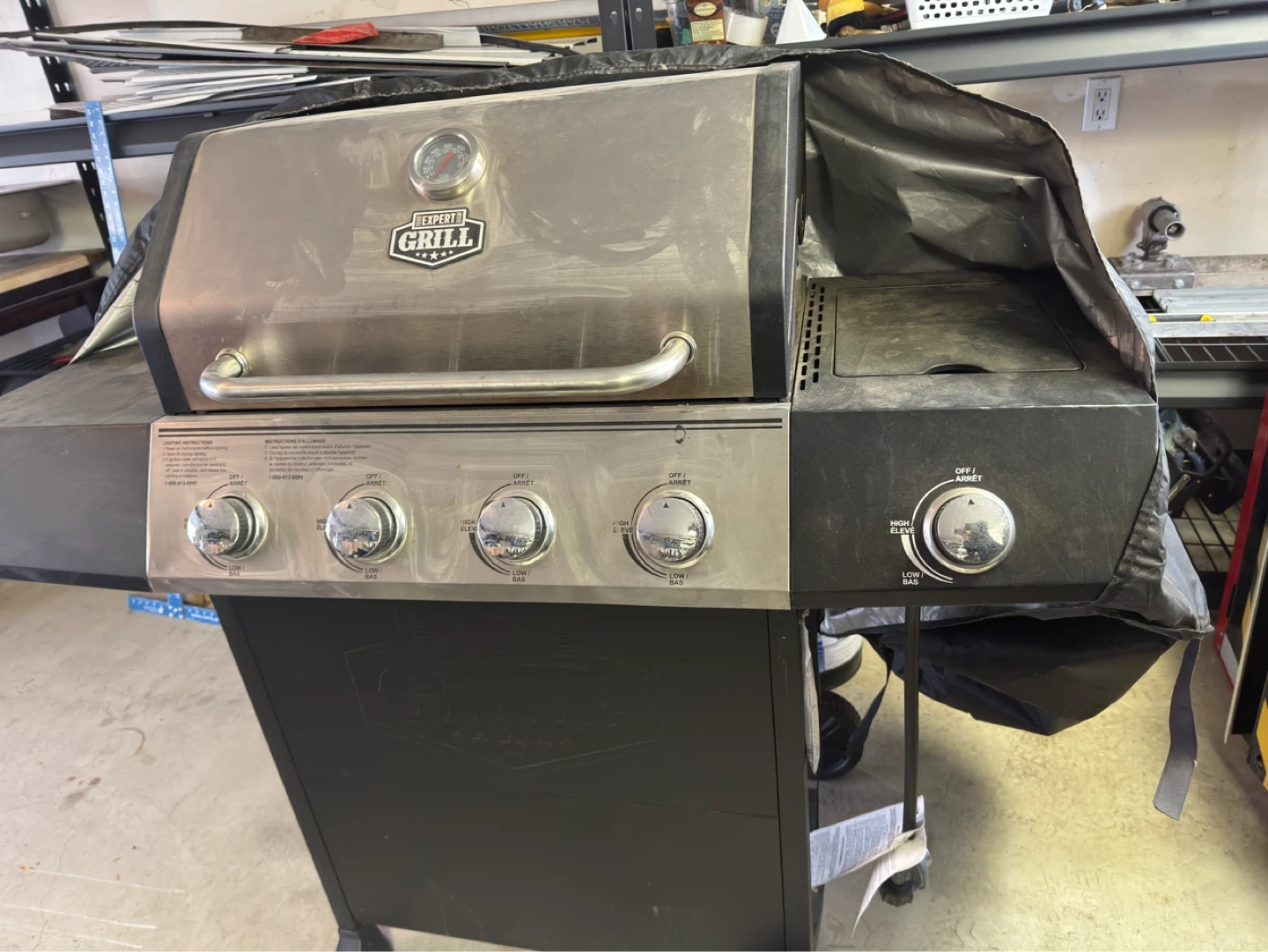 This Expert Grill propane gas grill has four main burners and a convenient side burner. Its stainless steel construction offers durability. It's great for outdoor cooking and gatherings!