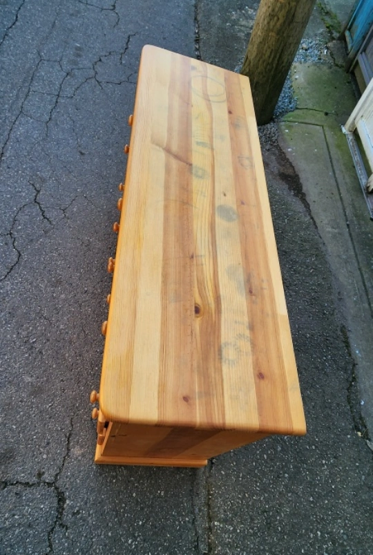 I am selling my brown 7 drawer dresser. There are some stains on the top surface as seen in photos but other than that all drawers work properly. I can deliver or pick up in Vancouver
