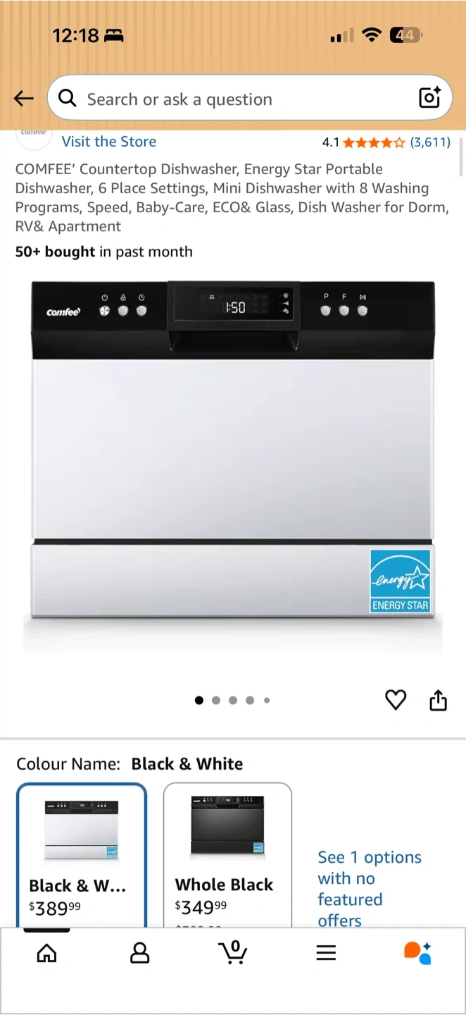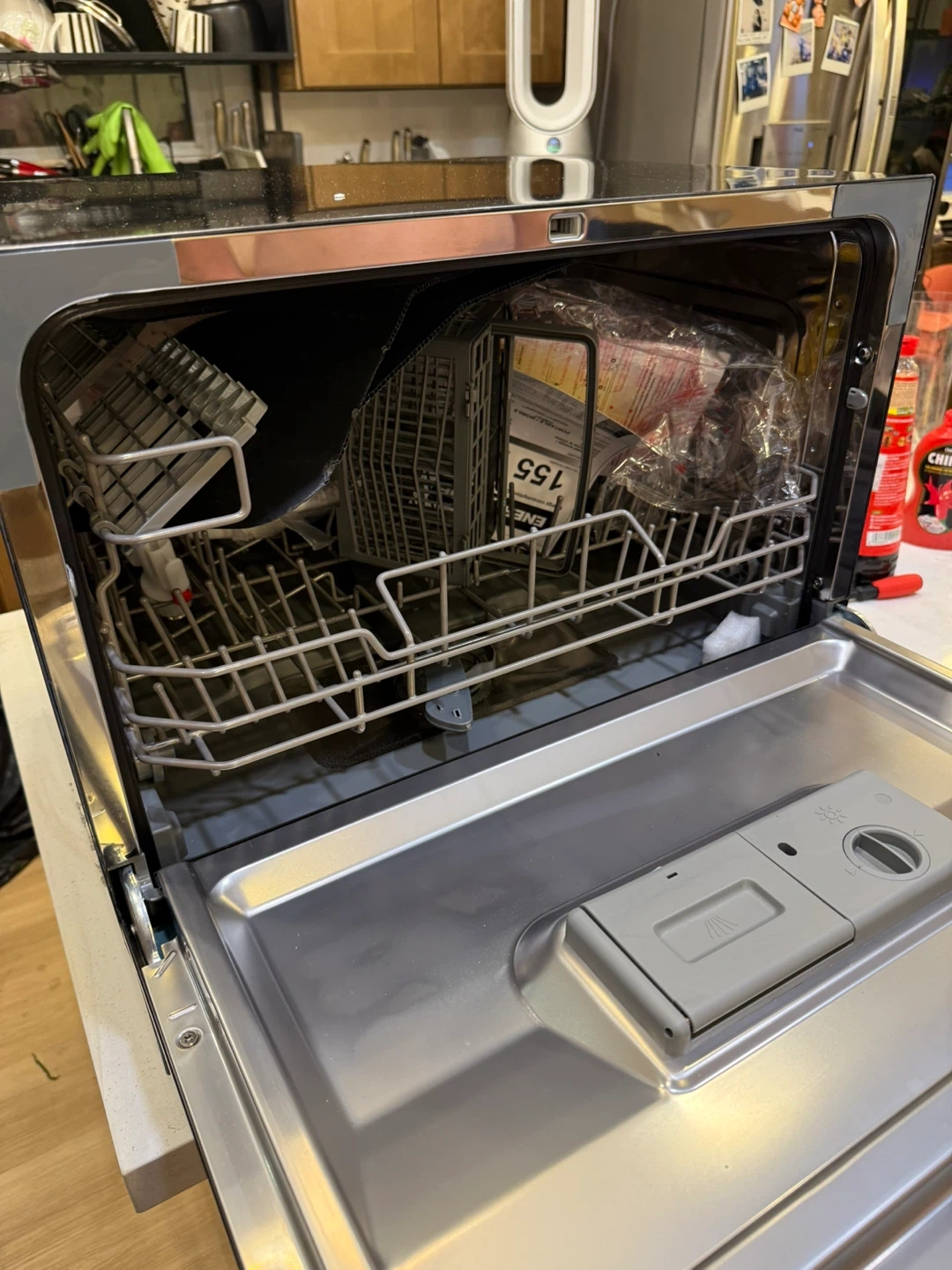Brand new Comfee countertop dishwasher in black and white. It has 6 place settings and 8 washing programs. Includes original box and packaging.