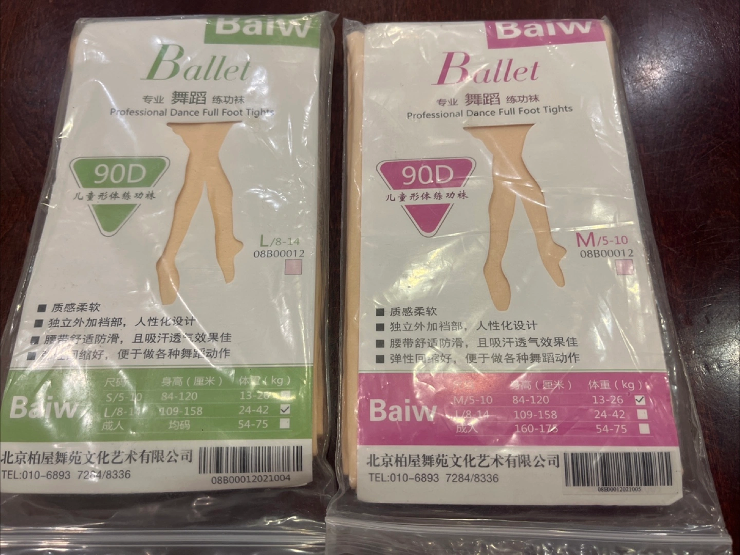 Baiw Ballet professional dance full foot tights for sale. They're size L/8-14 and are designed for children's ballet training.