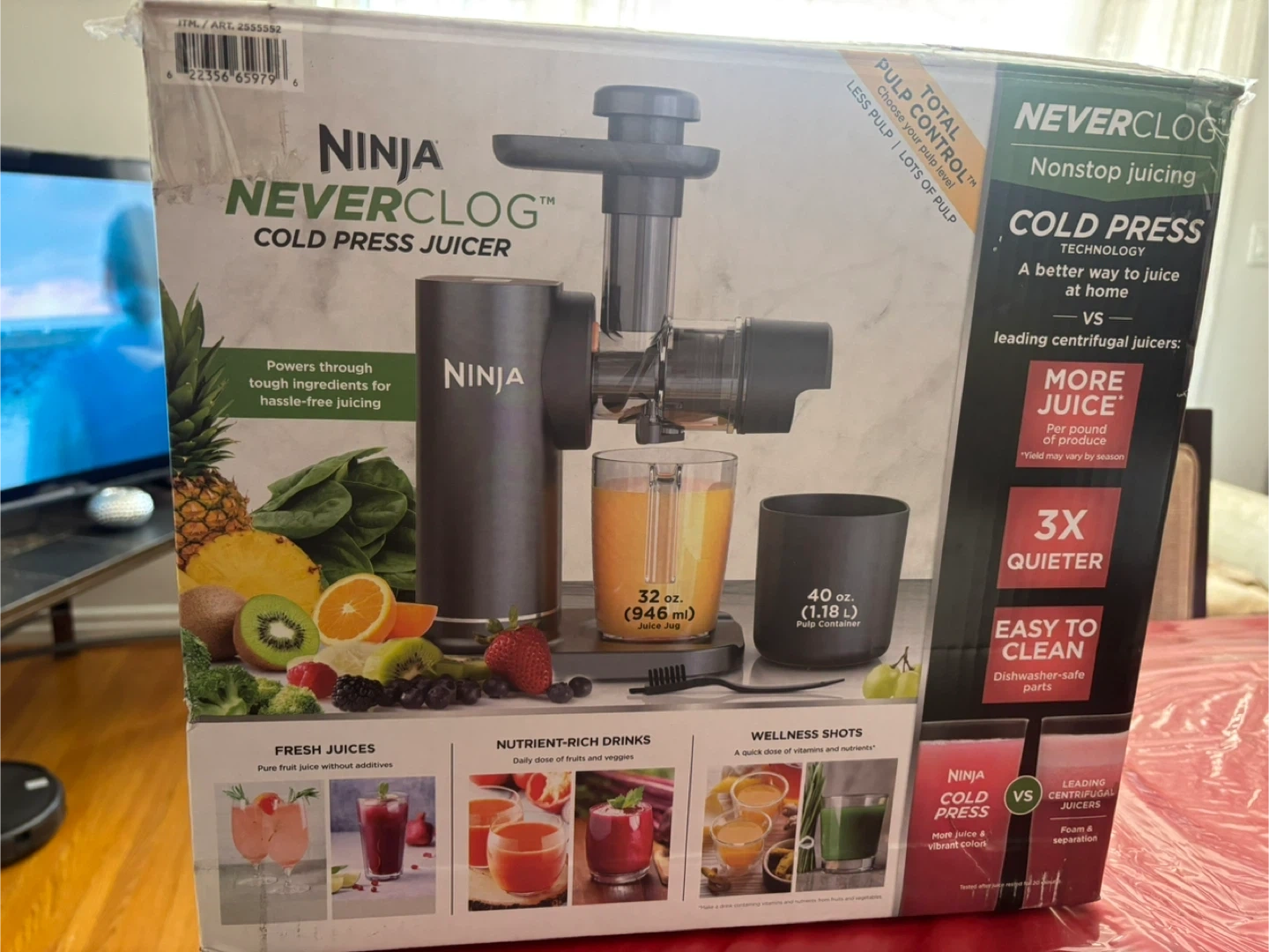 This Ninja NeverClog Cold Press Juicer is designed for non-stop juicing. It's a better way to juice at home compared to leading centrifugal juicers. It offers more juice per pound of produce and is 3x quieter. Dishwasher-safe parts make it easy to clean!