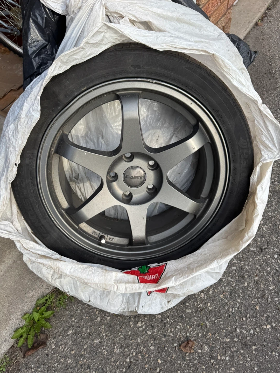 Selling a set of 4 FAST brand rims and tires. They are grey in colour and in good condition. Great for upgrading your ride!