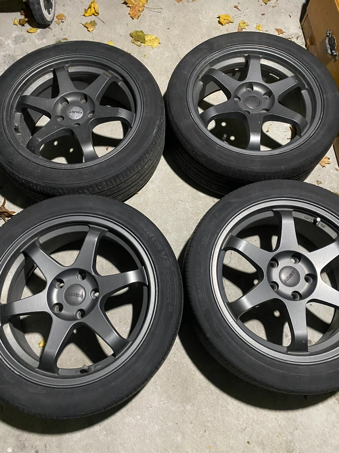 Selling a set of 4 FAST brand rims and tires. They are grey in colour and in good condition. Great for upgrading your ride!