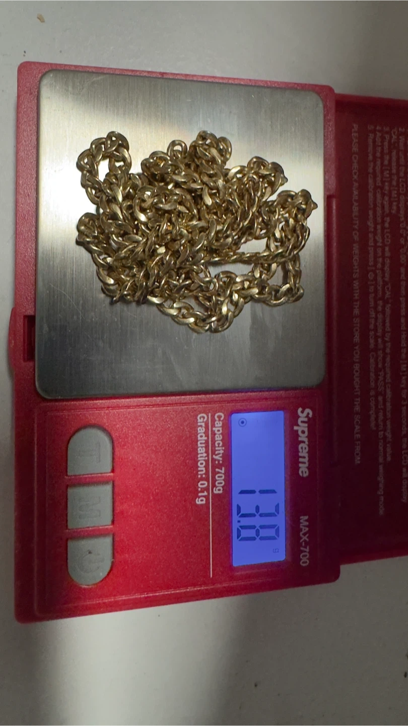 Buy & SellGold Chain NecklaceGold Chain Necklace$1,100Cuban link style gold chain necklace. Weighs 13 grams. It's a stylish accessory for everyday wear. 10k Italian goldSize22inchWHERE TO MEETStarbucksView MapSELLERJohnDevonsleigh726 reviews6 chats·1 favorites·77 viewsSEND CHAT TO SELLERHi John! I’m interested in your listing.Hi John! I’m interested in your listing.Get the Karrot app to chatSign In to chat