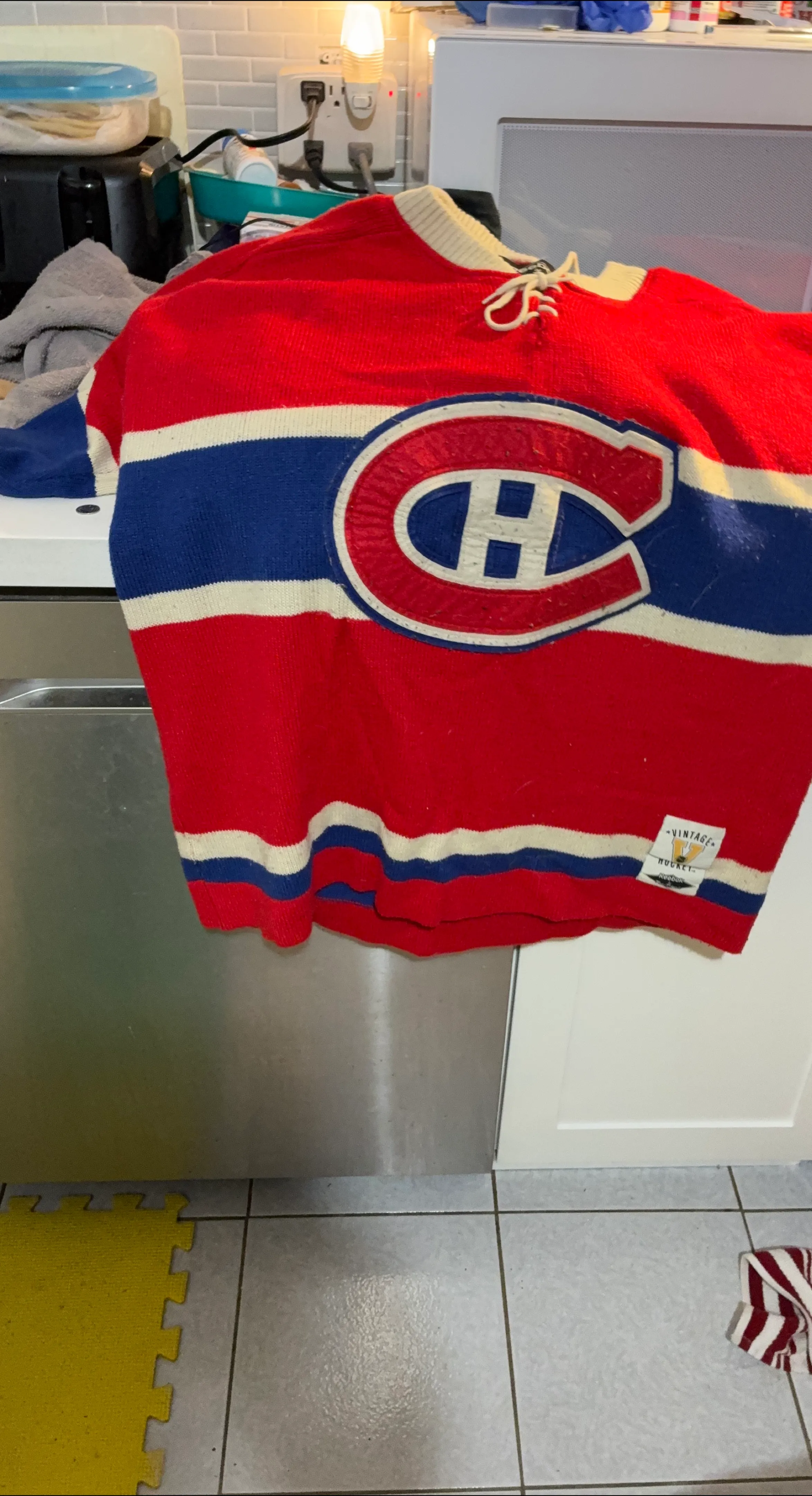 Selling a vintage Montreal Canadiens hockey jersey. The jersey features the classic Canadiens logo and colours. It's in good condition for its age and perfect for any Habs fan!