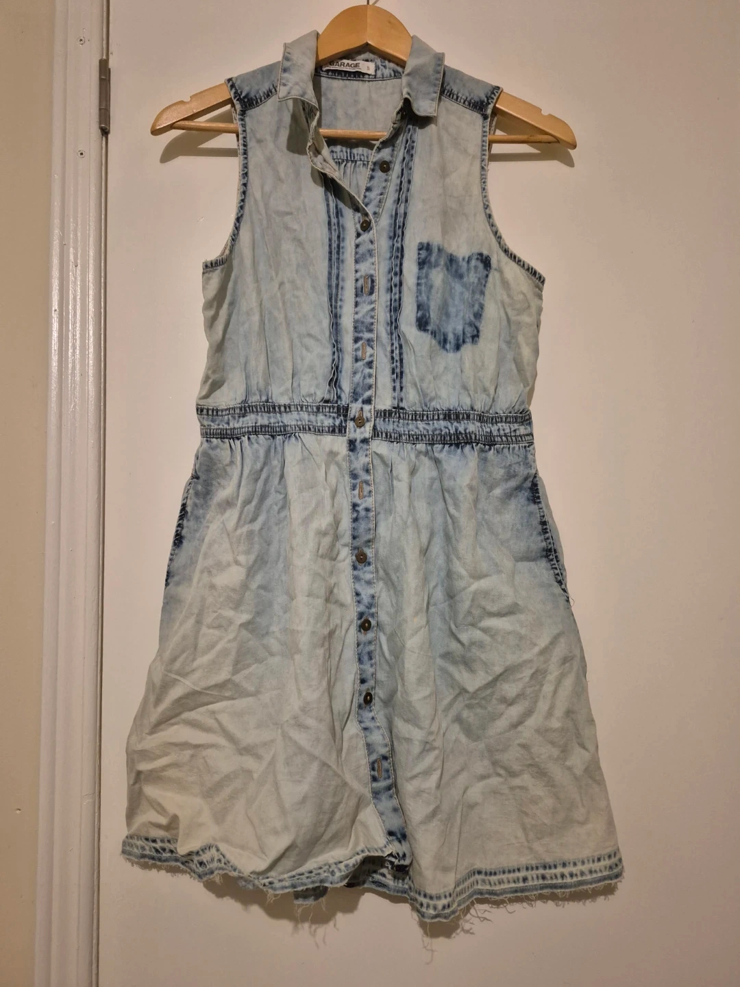 Buy & SellGarage Denim Dress - S/PGarage Denim Dress - S/P$8Sleeveless denim dress from Garage. Button-up front with a collared neckline. Elasticized waist for a comfortable fit. Size is S/P.WHERE TO MEETCheck LocationView MapSELLERMarloHighbush403 reviews0 chats·0 favorites·3 viewsSEND CHAT TO SELLERHi Marlo! I’m interested in your listing.Hi Marlo! I’m interested in your listing.Get the Karrot app to chatSign In to chat
