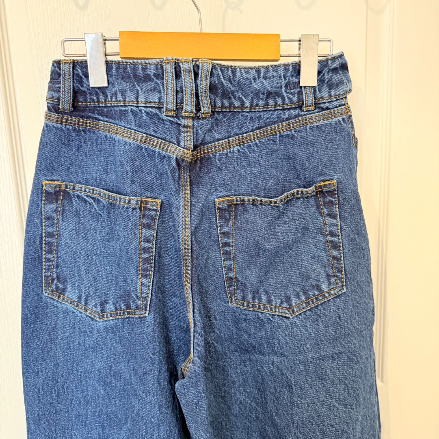 - Fit: High-waisted, wide-leg silhouette. Note: Heavyweight 100% cotton denim with no stretch.