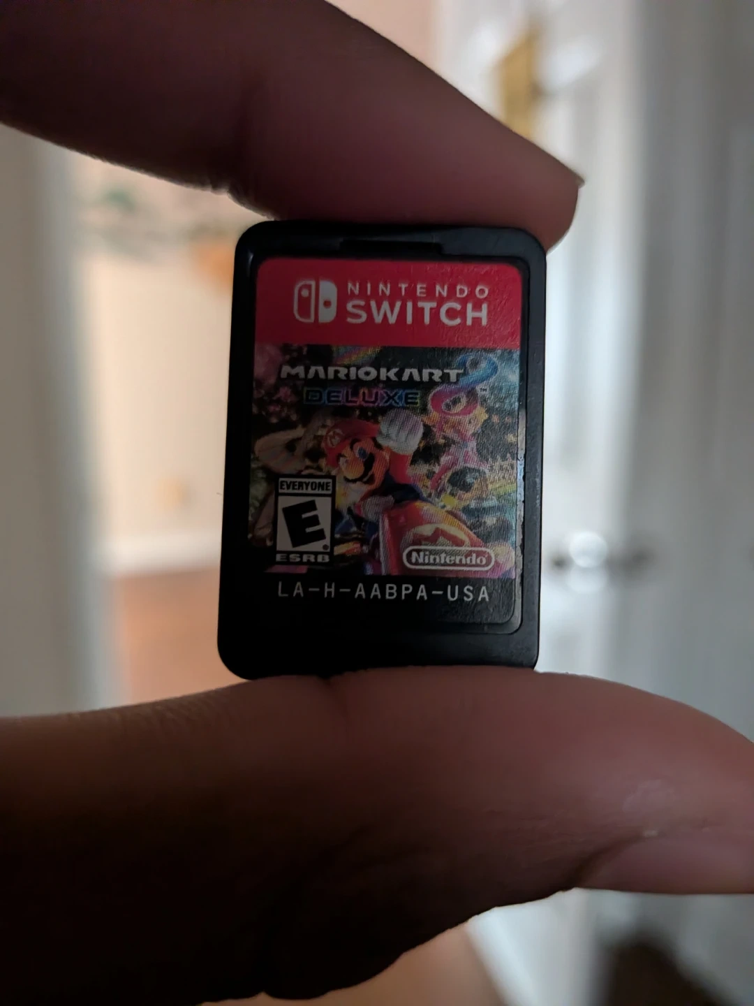 This is the Mario Kart 8 Deluxe game cartridge for Nintendo Switch. It's rated E for Everyone by ESRB. Price is negotiable