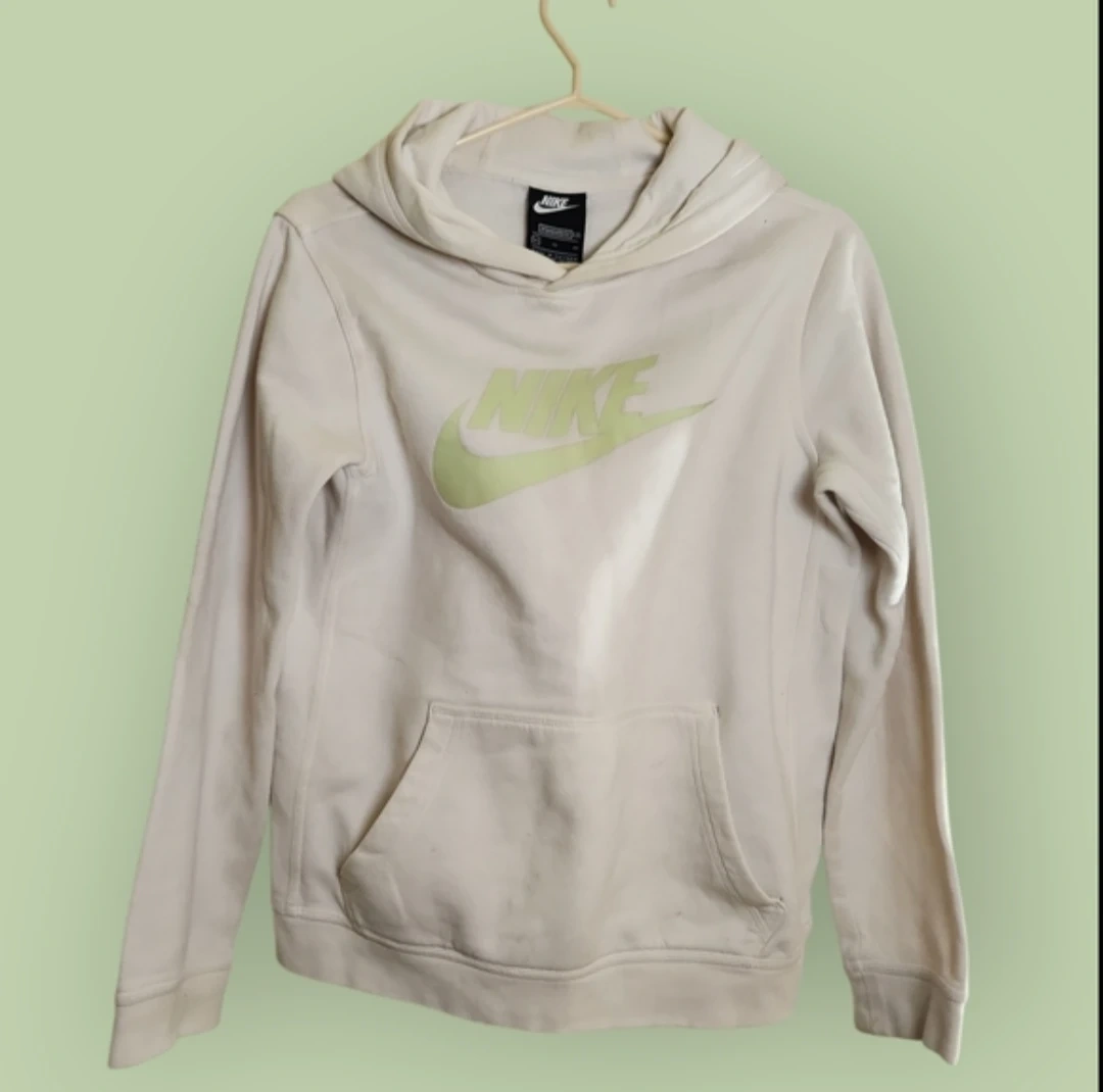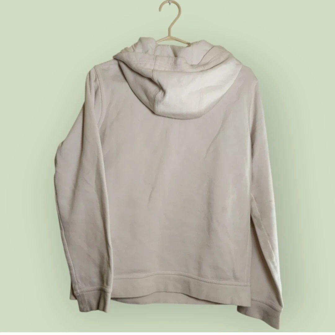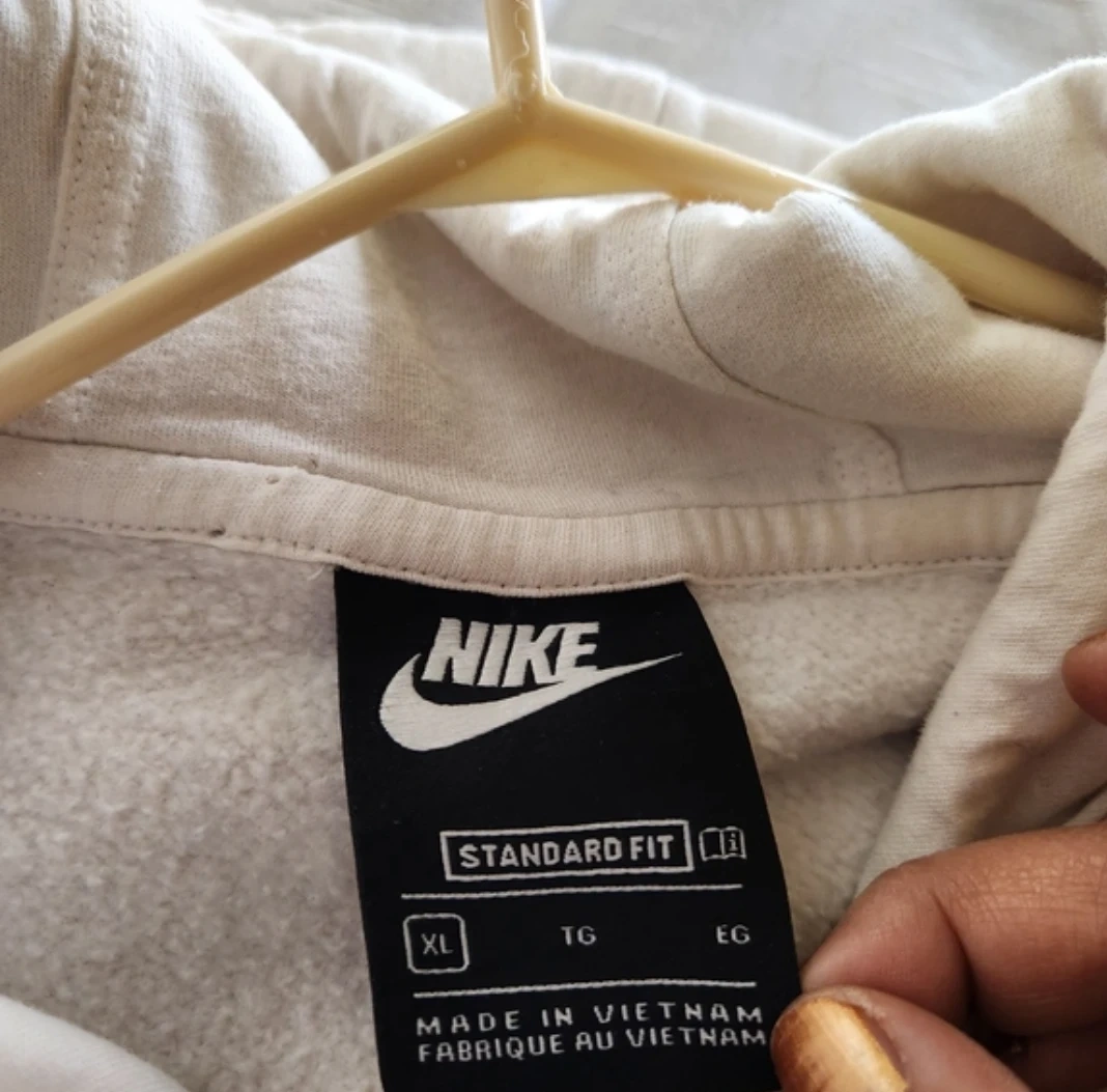 Off-white hoodie with a classic black Nike tag. Standard fit for everyday wear.