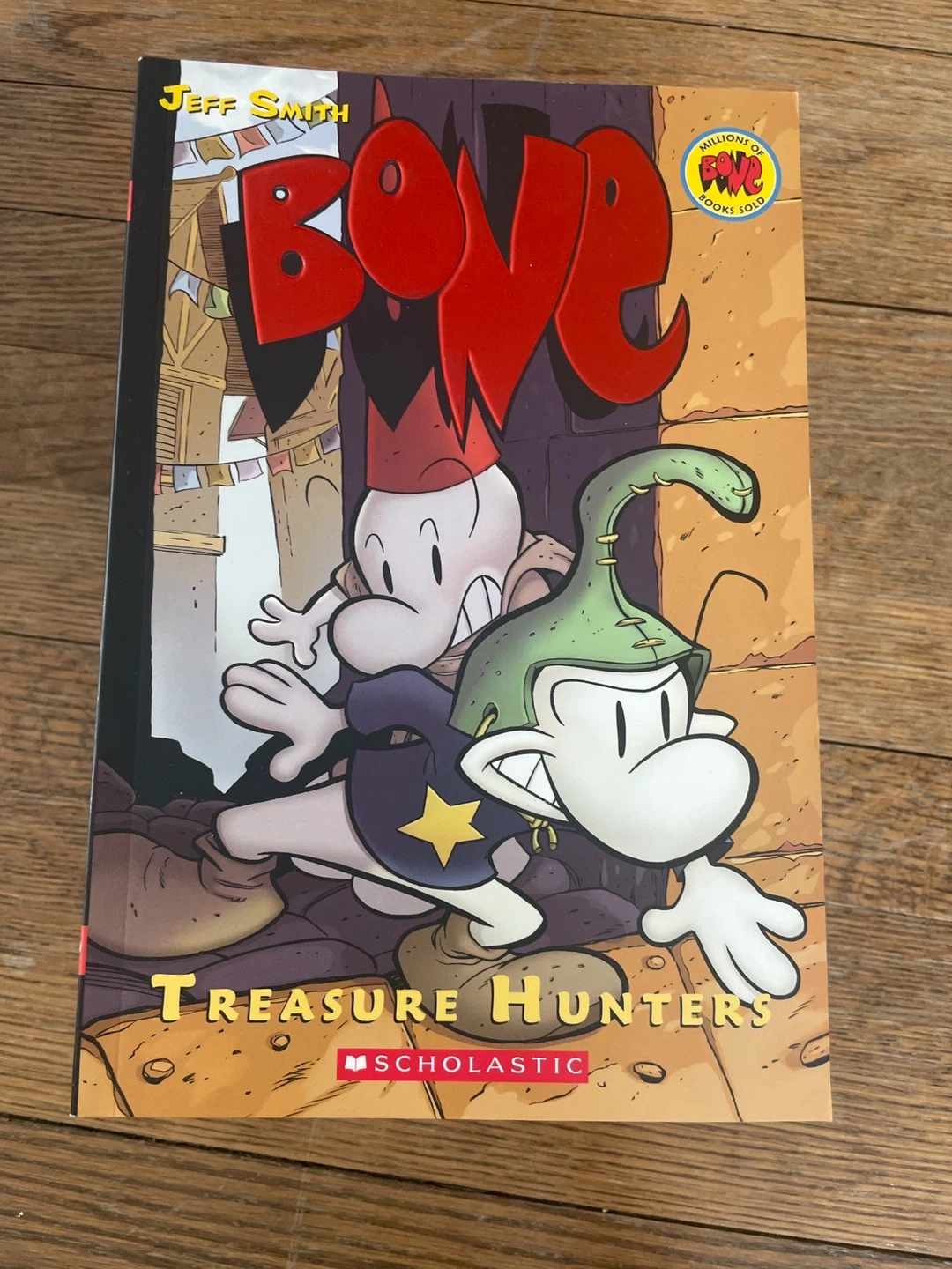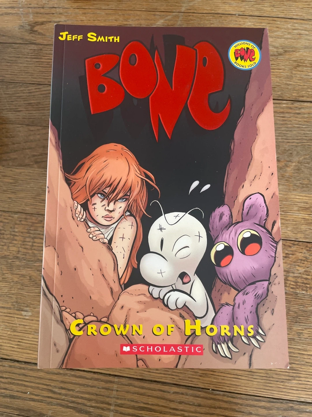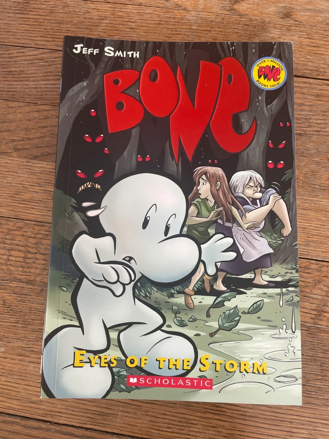A collection of Jeff Smith's BONE graphic novels. Includes 'The Dragonslayer', 'Eyes of the Storm', 'The Great Cow Race', 'Out From Boneville', and more. Published by Scholastic. Great for fantasy lover.