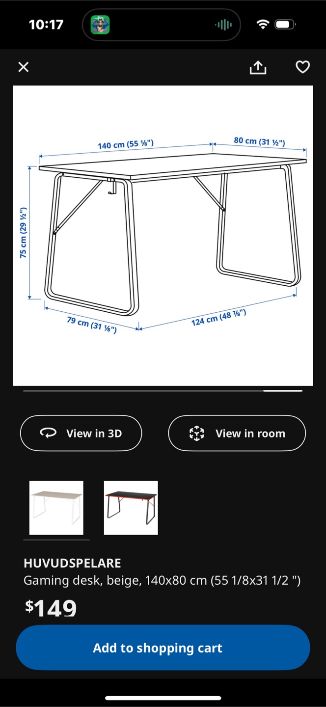 1 / 31 / 3Buy & SellGaming Desk ikeaGaming Desk ikea$90A beige gaming desk. White, V-shaped legs provide support. The tabletop offers ample space. Perfect for creating a calm work environment.ConditionLike newWHERE TO MEETmatcha matchaView MapSELLERverifiedZoeyChurch Yonge Corridor27222 reviews1 chatsΒ·0 favoritesΒ·35 viewsSEND CHAT TO SELLERHi Zoey! Iβm interested in your listing.Hi Zoey! Iβm interested in your listing.Get the Karrot app to chatSign In to chat