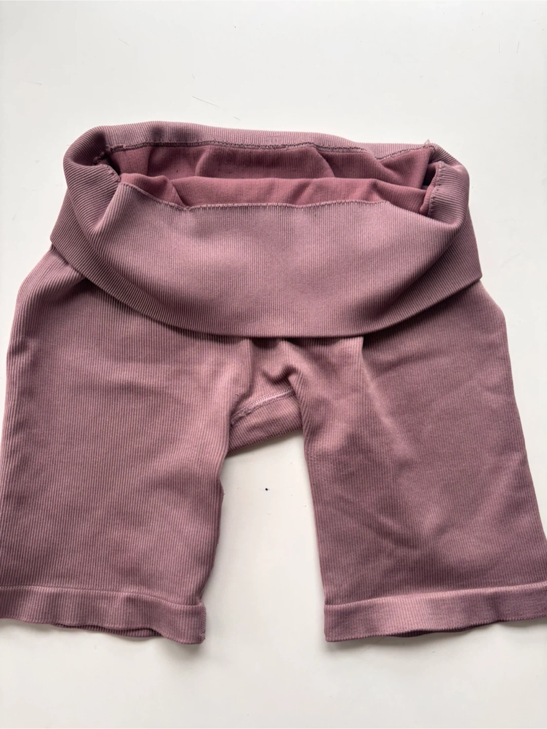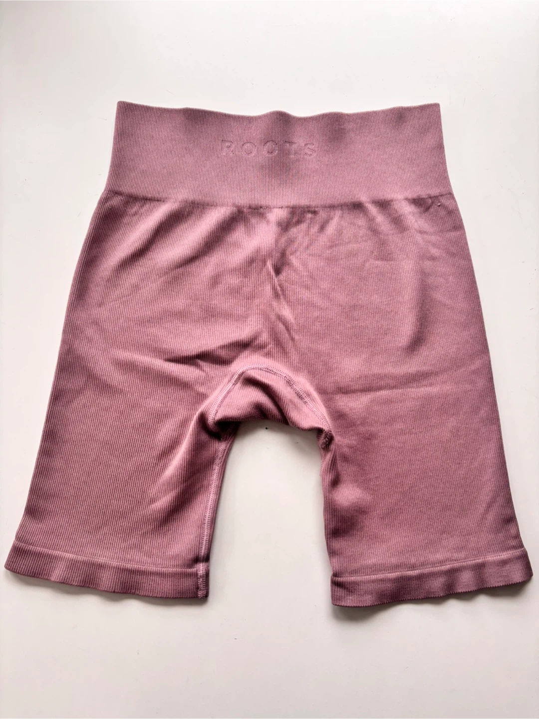 These Roots ribbed bike shorts are a comfortable mauve colour. They're made from a stretchy, fitted material. Perfect for workouts or casual wear!