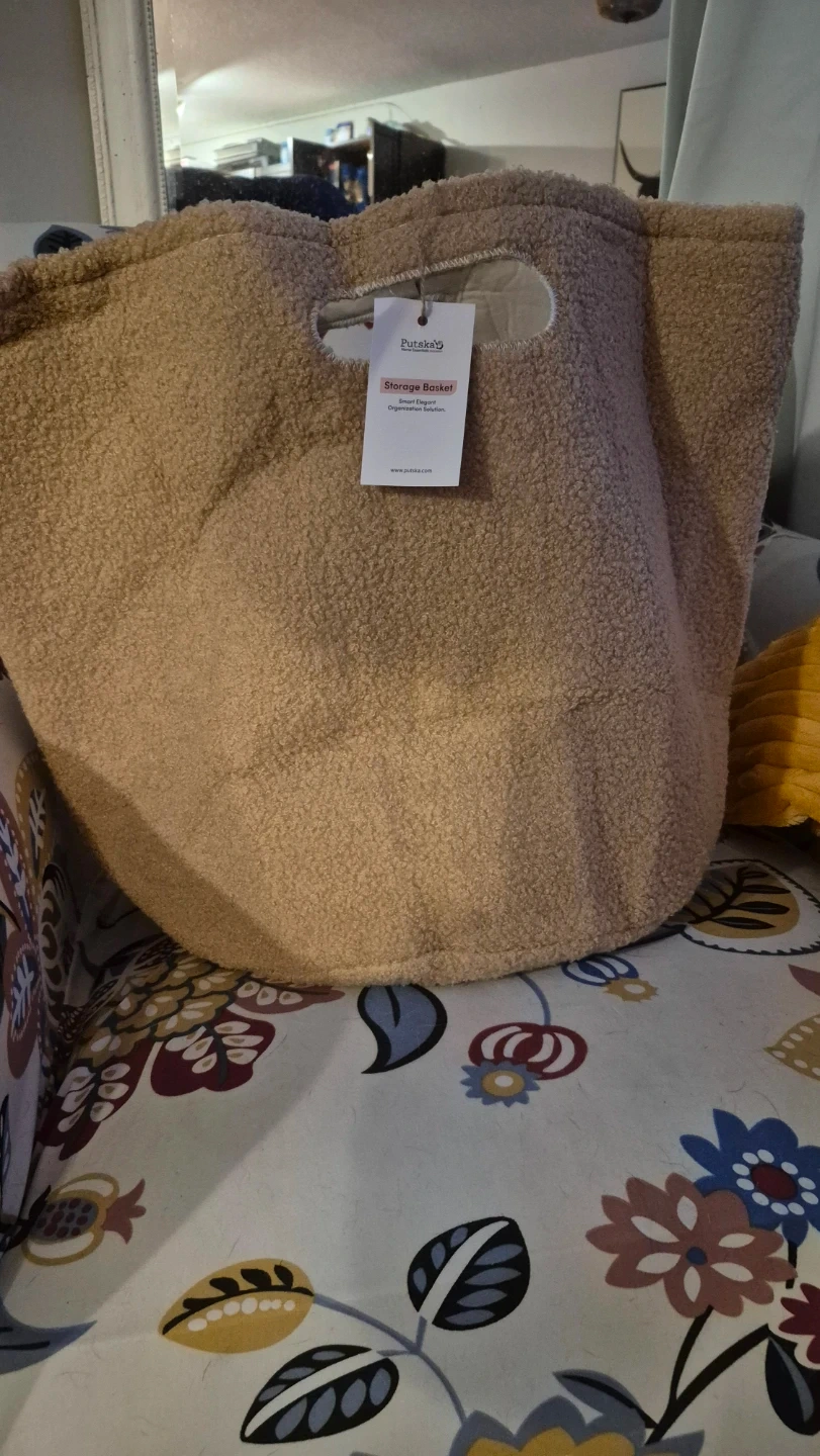 This Putska Home Essentials storage basket is perfect for organizing your space. It's made of a soft, fuzzy material and measures 15x16 inches. This basket would be useful for storing toys, blankets, or other household items. 🧡